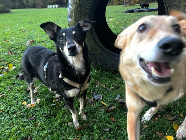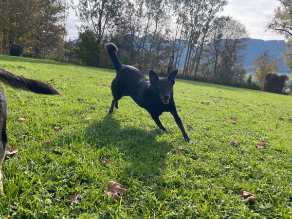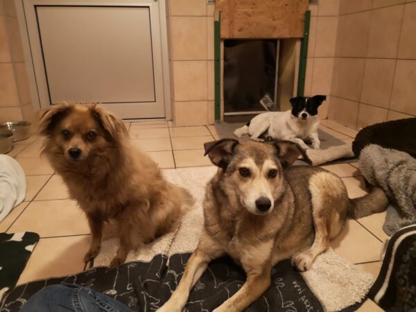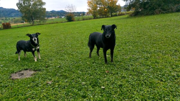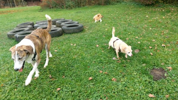 Percy, Nicky und Laluna freuten sich sehr, als Jutta und Matthias sie besuchten. Nach einer lieben Begrüßung sprangen die drei ins TierHeimauto und schon ging es los. Auf dem Hundeplatz hatten alle viel Spaß, Nicky und Percy sausten schnell wie der Wind um die Wette, wobei Nicky immer die noch schnellere ist. Laluna blieb gerne in der Nähe von Jutta und Matthias und freute sich über Leckerchen – und nachdem auch bei Percy und Nicky der erste Dampf heraußen war, kamen sie dazu und alle trödelten gemeinsam über das Gelände. 🙂