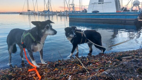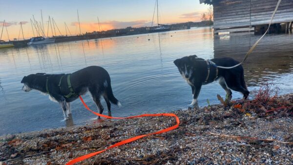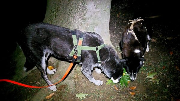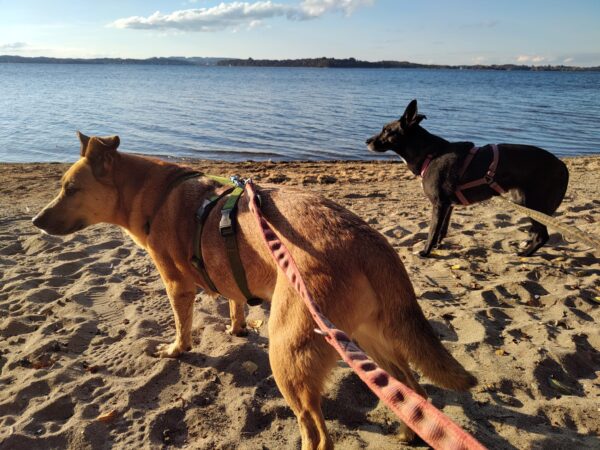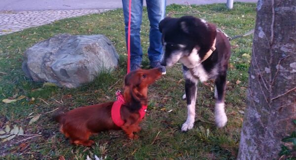 Am Abend war Sam nochmal eine kleine Runde mit Dani, Chris und seiner Hündin Bella unterwegs. Das klappte richtig gut, Dani ging mit Sam voraus und Chris kam mit Bella hinterher, die Hunde machten das toll 🙂 Dani und Chris achteten zwar noch auf genügend Abstand, aber Bella suchte schon immer wieder die Nähe von Sam. Ganz an sich heranlassen wollte Sam Bella noch nicht, aber er zeigte das auf sehr höfliche Art – kein Knurren, kein Bellen. 😉 Sam beschwichtige Bella, indem er stehen blieb, den Kopf abwendete und blinzelte – und Bella verstand das. 🙂