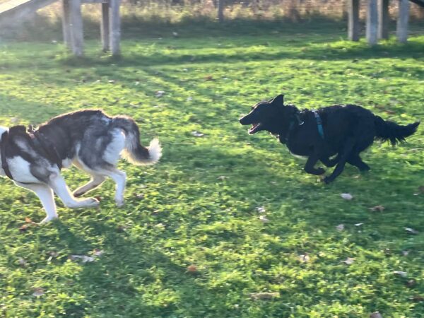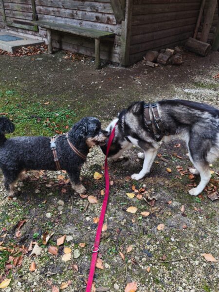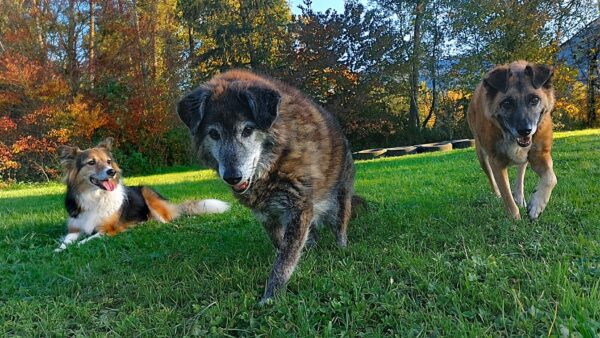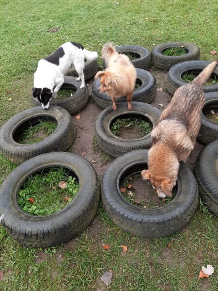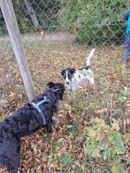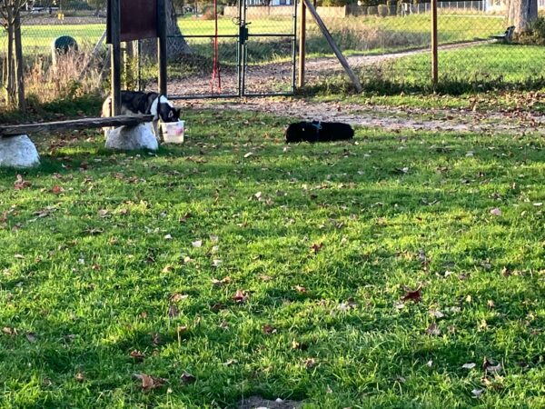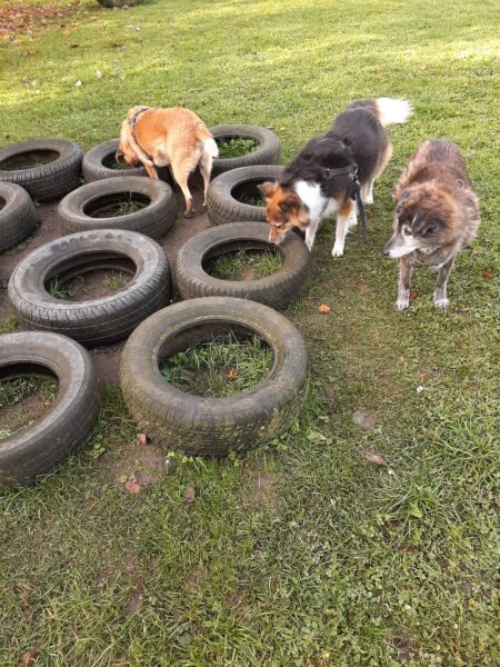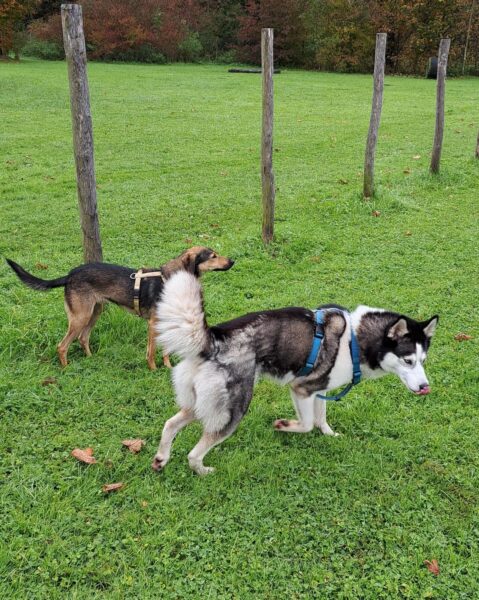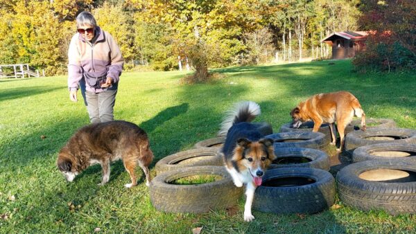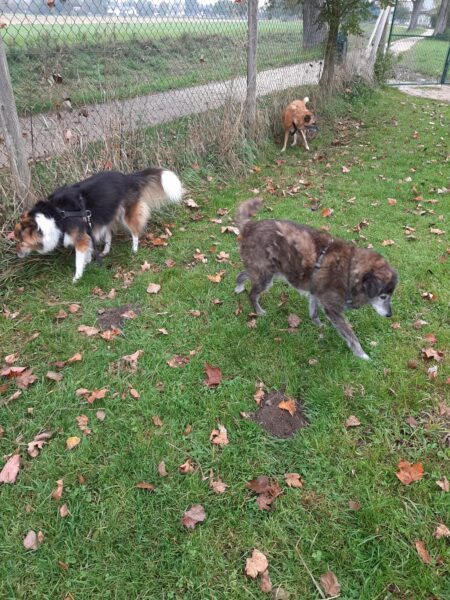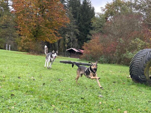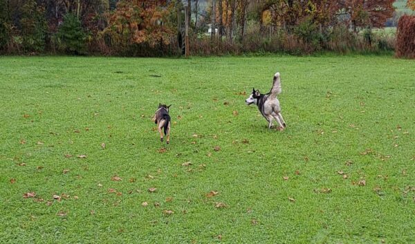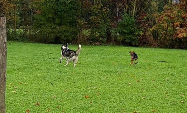 Mit Rosalie, Lucky und Balto waren Conny und Elfriede auf dem Hundeplatz. Trotz des Regens hatten alle 3 eine Mordsgaudi als sie fröhlich über die Fläche flitzten. Conny hatte Brühe dabei, die sehr gut ankam und nachdem die verputzt war, gingen alle noch außen rund um den Hundeplatz, wobei sie auch andere Hunde trafen, die freundlich begrüßt wurden. 🙂
