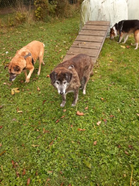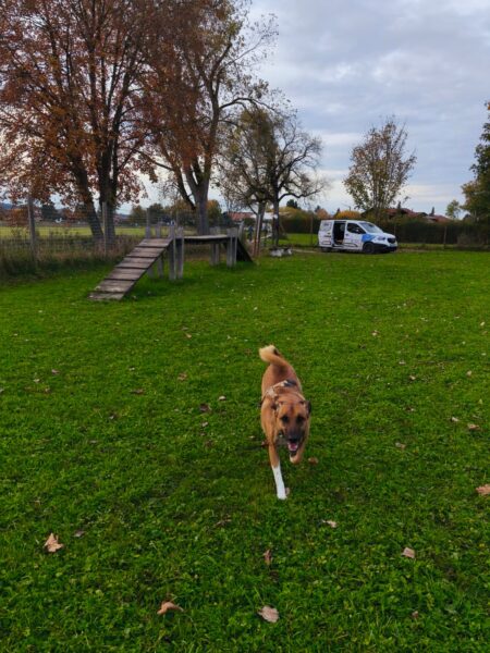 Conny und Elfriede sind mit den Resi und Franzi den Waldweg in Richtung Farbinger Hof (mit Abstecher zum Stadel im Wald) gegangen. Aslan war auf dem Hundeplatz und hat alle freundlich am Zaun begrüßt. Als er wieder auf dem Weg ins TierHeim war, gingen die vier auf den Platz, was den Mädels viel Spaß gemacht hat. Die ausgelegten Leckerlies haben sie gekonnt eingesammelt und sie freuten sich über den Freilauf. 🙂