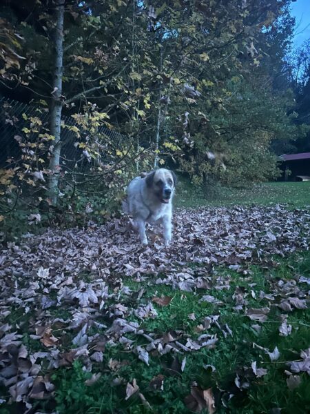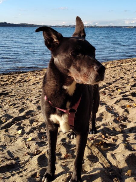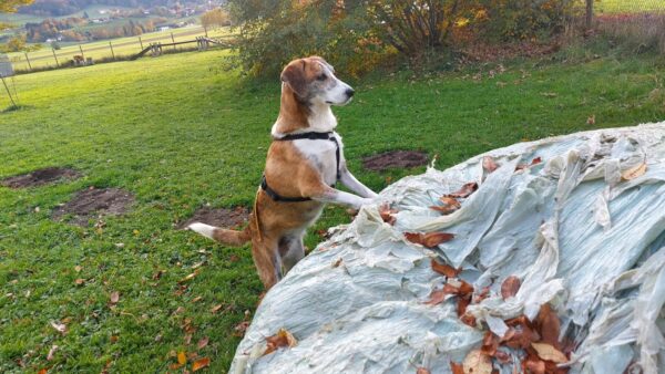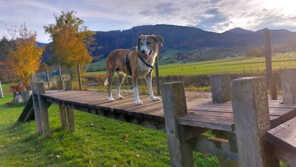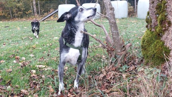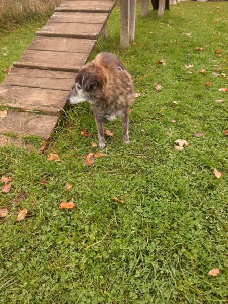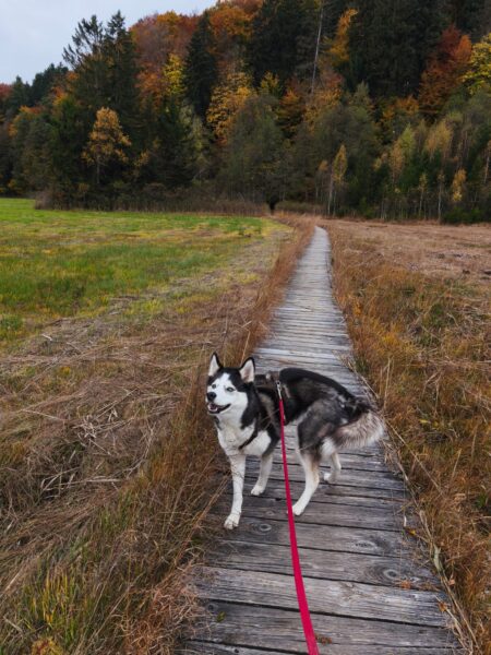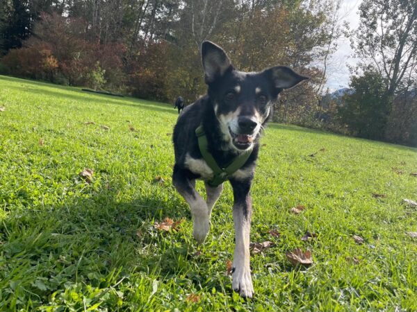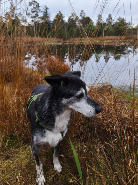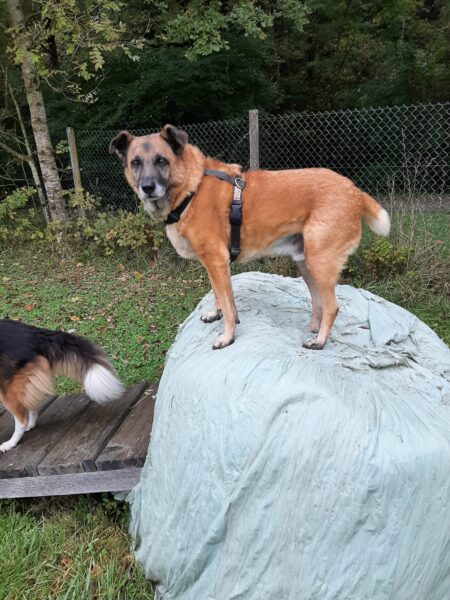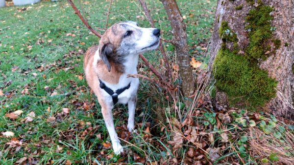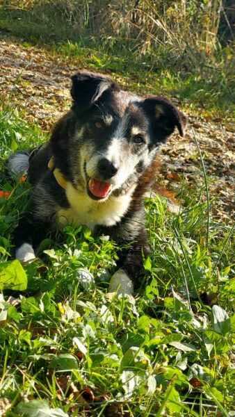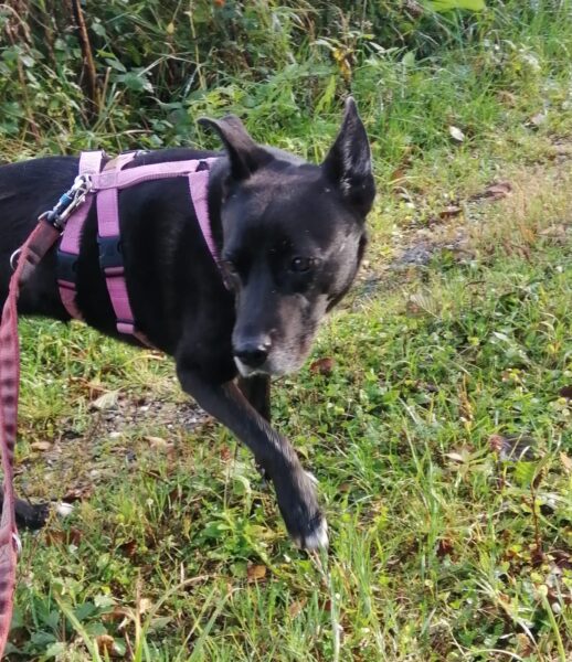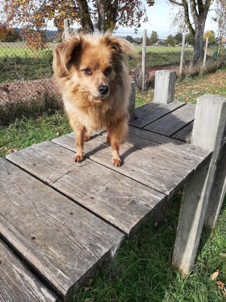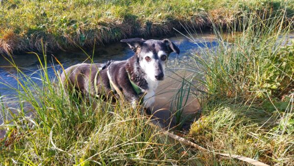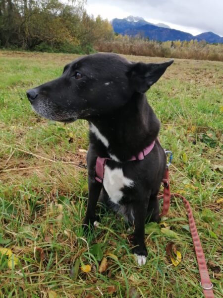 Etwas später kam Jeanne und machte mit Lucky einen Spaziergang zwischen Rottau und Grassau. Obwohl es immer mal wieder regnete, war Lucky in Bestlaune, schnüffelte viel herum, freute sich über Leckerchen und hat Kunststücke vorgeführt. 🙂