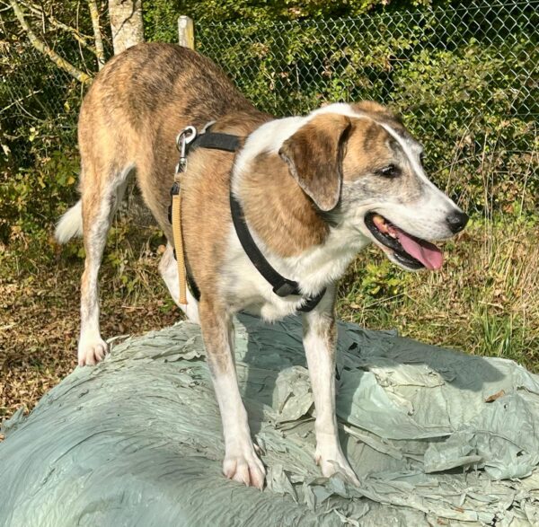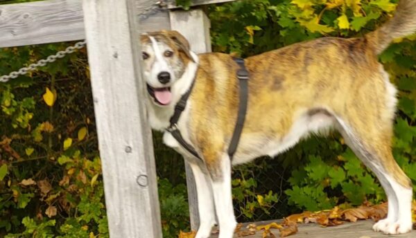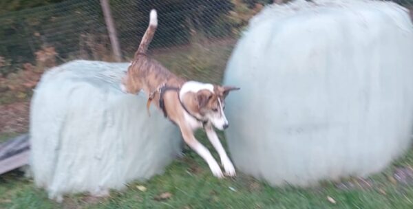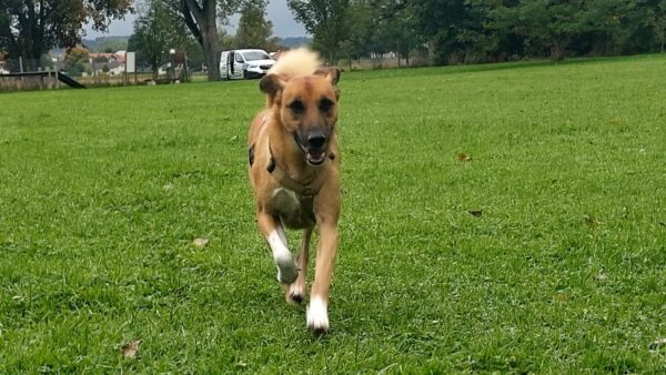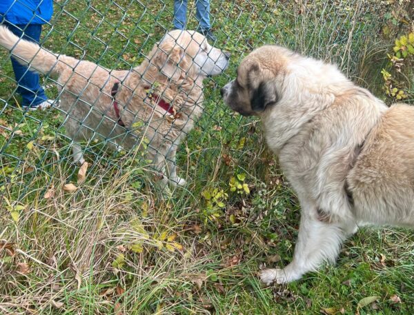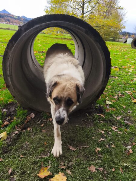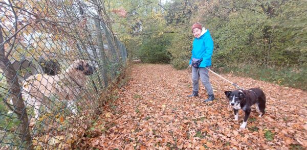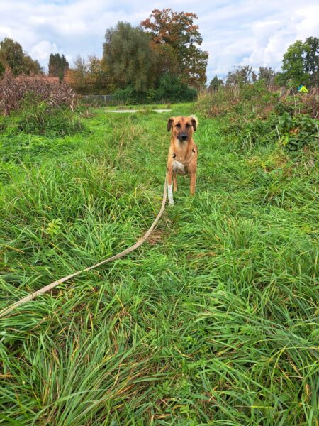 Heute waren Interessenten für Lucky 2.0 da, die früher schon einmal einen Hund von uns adoptiert hatten. Dani erzählte ihnen alles, was wir bis jetzt über Lucky 2.0 wissen, danach lernten sie ihn im Hof kennen, was gut klappte. Nach einer Weile machten sie gemeinsam einen Spaziergang auf der großen Wiese und Lucky zeigte sich dabei von seiner besten Seite. 🙂 Erst als die Interessentin ihm zum Schluss Leckerchen gab, fuhr Lucky 2.0 hoch und sprang die Frau immer wieder an. Sie blieb ganz ruhig und so beruhigte er sich gleich wieder.