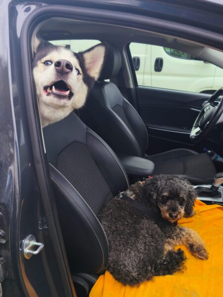 Conny fuhr mit Lena zum Hundeplatz, wo die beiden fröhlich durch den Regen tanzten. Lena hatte viel Spaß, sauste von Gerät zu Gerät, gewann das Wettrennen mit einer Joggerin und sammelte die für sie ausgelegten Leckerchen ruck-zuck ein. Es war trotz des Regens ein richtig schöner Ausflug. 🙂 Im Auto hat Conny Lena erstmal ordentlich abgetrocknet, was Lena sehr genossen hat. 🙂