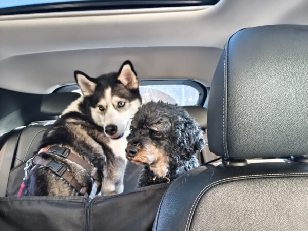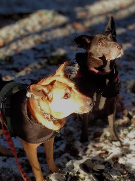 Mit Kirana und seinem Rüden Pablo war Carsten lange im Eichental spazieren. Die Hunde begrüßten sich am Anfang der Tour freundlich, dann genossen alle drei die Runde im herrlichen Sonnenschein. Kirana und Pablo schnüffelten entspannt nebeneinander her und freuten sich über Leckerliesuchen. Als sie wieder am Auto waren, sprangen beide Hunde gleich auf die Rückbank und blieben während der Fahrt auch gemeinsam ruhig und entspannt hinten liegen. 🙂