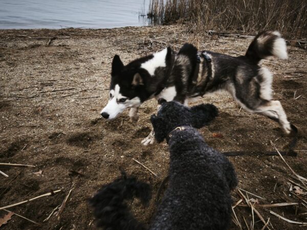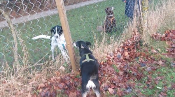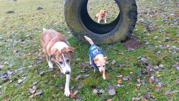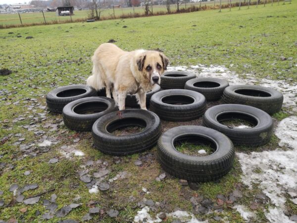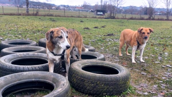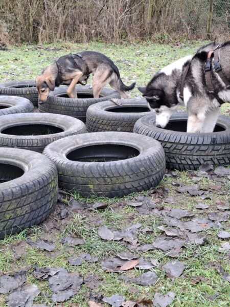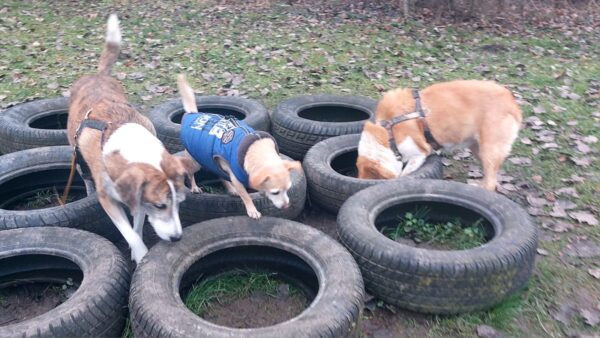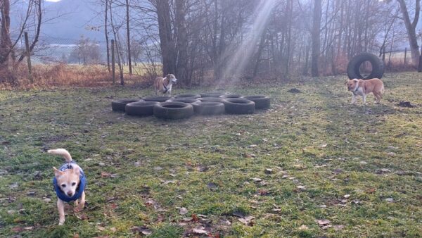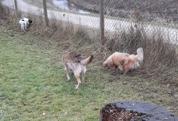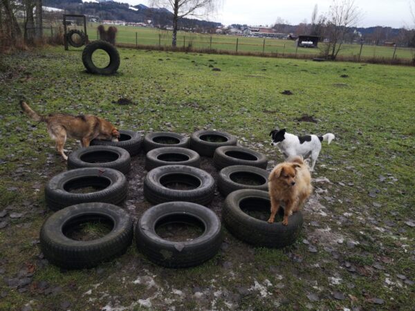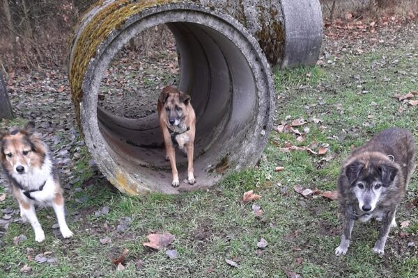 Elfriede und Conny waren mit Rosalie, Lucky und Balto auf dem Hundeplatz, wo Lucky und Rosalie begeistert herumflitzten und Balto in aller Ruhe seine Schnüffelrunde drehte. Bei den Reifen sammelten die drei gemeinsam die von Elfriede und Conny ausgelegten Leckerchen ein, weitere Gerätearbeit konnte heute leider nicht stattfinden, weil die Geräte nass und somit rutschig waren. Deshalb gingen Elfriede und Conny mit den dreien noch außerhalb des Geländes spazieren, wo sie herumschnüffelten, die Gegend beobachteten und sich freuten, andere Hunde zu treffen. 🙂