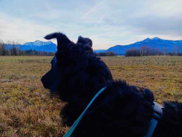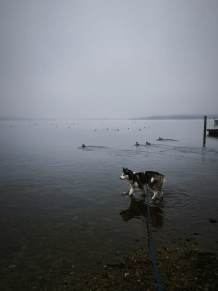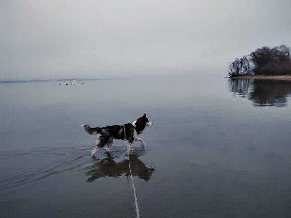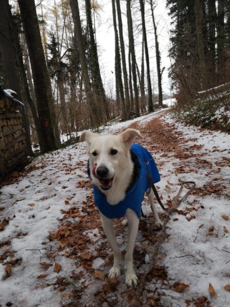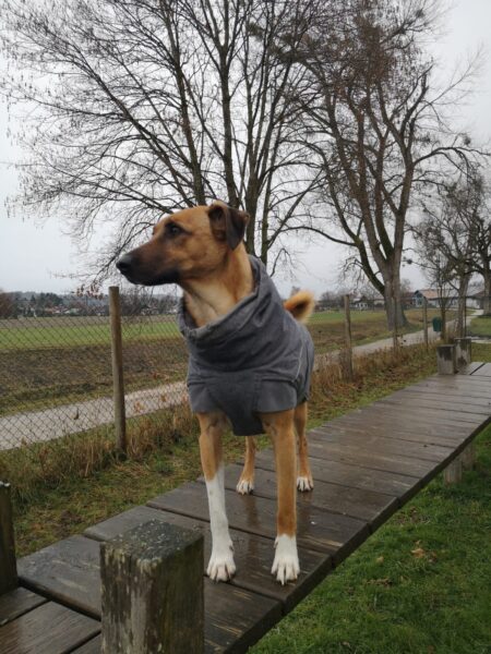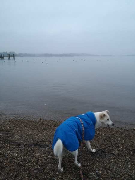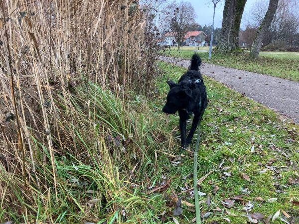 Gunda und Hannes machten mit Kirana einen langen Spaziergang am Chiemsee in Richtung Prien. Kirana erkundete gefühlt jedes Mauseloch und freute sich über Leckerliesuchen. Obwohl es mittendrin ziemlich stark zu regnen begann, machten die drei einen schönen Ausflug. Zurück am Auto trocknete Gunda die pitschnasse Kirana ab und so kam sie gut gelaunt und fast schon wieder trocken zurück ins TierHeim, wo sie gleich in ihr Zimmer ging. 🙂