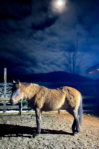 Abends waren Lukas und Biggi im Stall, die Gowinda und Wallace gleich ihr Müsli gaben und die üblichen Stallarbeiten erledigten, während die Pferde fraßen. Nachdem die beiden aufgefuttert hatten, haben Lukas und Biggi noch mit ihnen gekuschelt, dann fuhren sie zurück ins TierHeim. 🙂