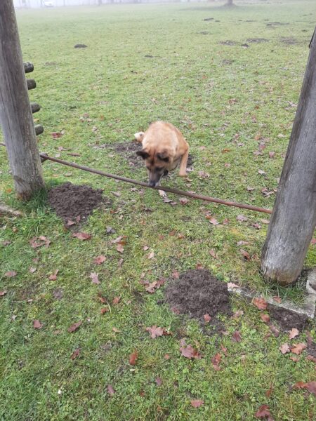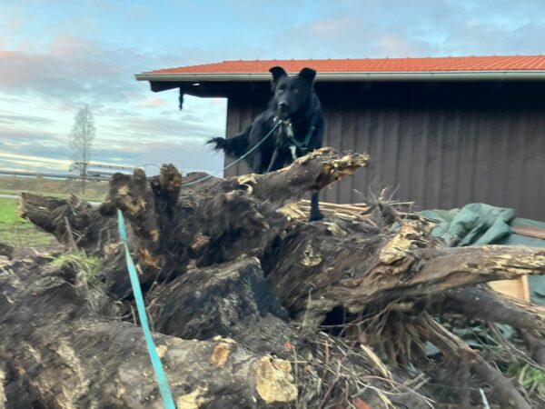 Conny war mit Lena auf dem Hundeplatz. Lena flitzte fröhlich herum und begleitete dabei auch Leute, die am Zaun vorbei kamen. Dann kletterte sie geschickt auf einigen Geräten herum und freute sich über Leckerchen dafür. Auf dieser Tour entdeckte sie auch die leerstehende Garage unseres Rasenmähroboters, die gleich neugierig erkundete. 🙂