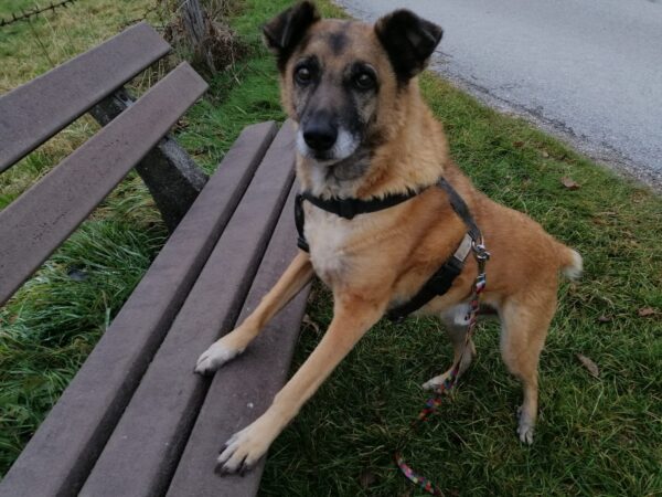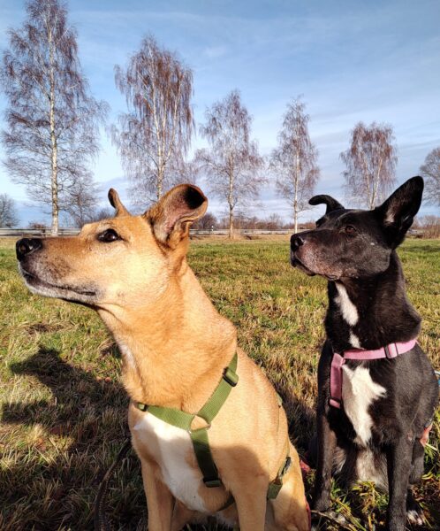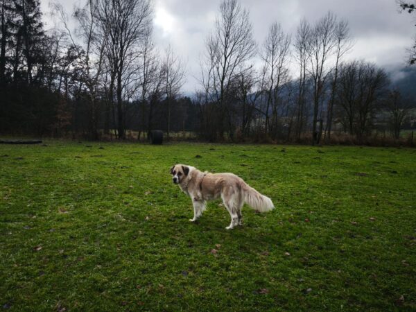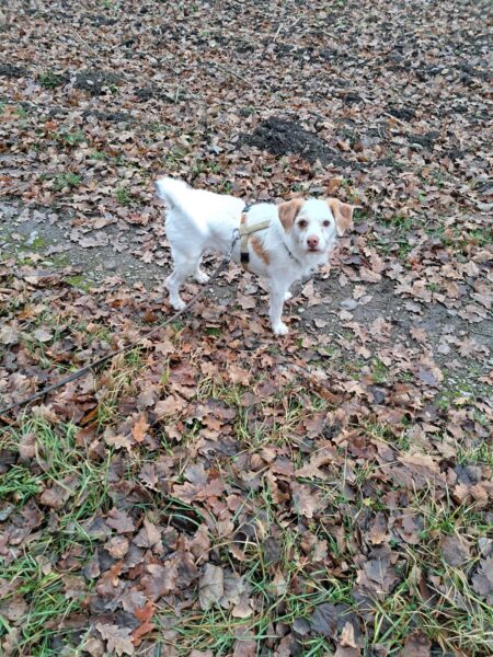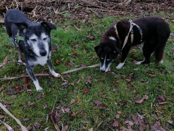 Biggi war mit Elfie unterwegs. Die beiden gingen auf die große Wiese, wo Elfie fröhlich herumschnüffelte und begeistert Leckerchen einsammelte, die Biggi für sie ausgelegt hatte. 🙂