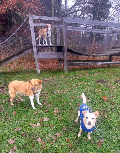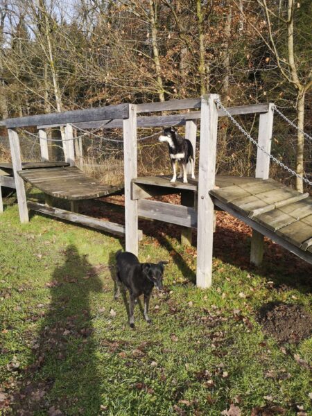 Conny war am späteren Nachmittag mit Percy, Nicky und Laluna auf dem Hundeplatz, wo die drei viel Spaß hatten: Sie schnüffelten herum, kletterten über die Geräte und freuten sich über Leckerchen. 🙂
