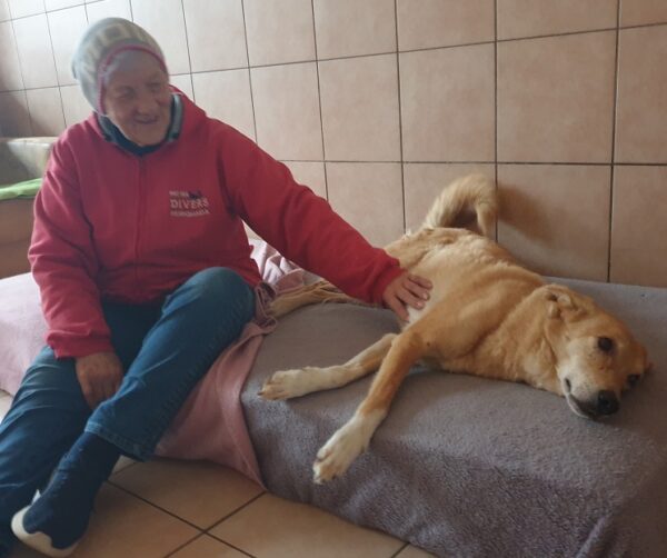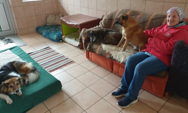 Rosalie, Lucky und Balto freuten sich über Frau Schatz´ Kuschelbesuch. Balto blieb sogar ruhig auf der Couch liegen, während sich Lucky an Frau Schatz lehnte, um gestreichelt zu werden und Rosalie legte sich auf die Matratze, um auch mit dabei zu sein. 🙂