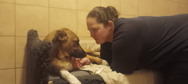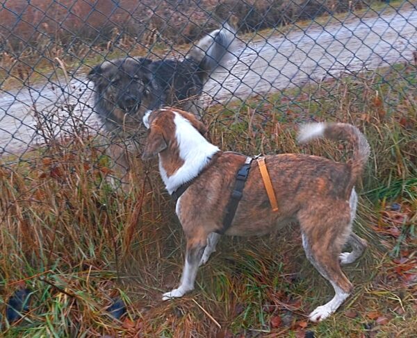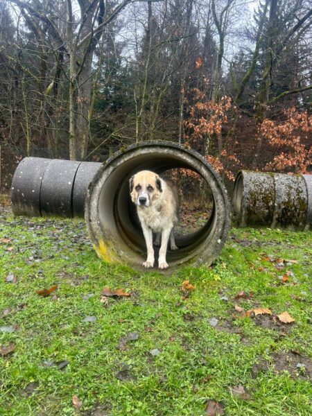 Aslan freute sich über eine Fahrt mit Kerstin zum Hundeplatz. Die beiden begrüßten sich fröhlich im Zimmer, dann konnte es Aslan kaum erwarten, bis es endlich los ging. Oben angekommen hatten beide viel Spaß, der Regen störte Aslan gar nicht. Er schnüffelte ausgiebig und freute sich über Leckerliesuchen, freundliche Hundebegegnungen am Zaun und Streicheleinheiten von Kerstin. 🙂