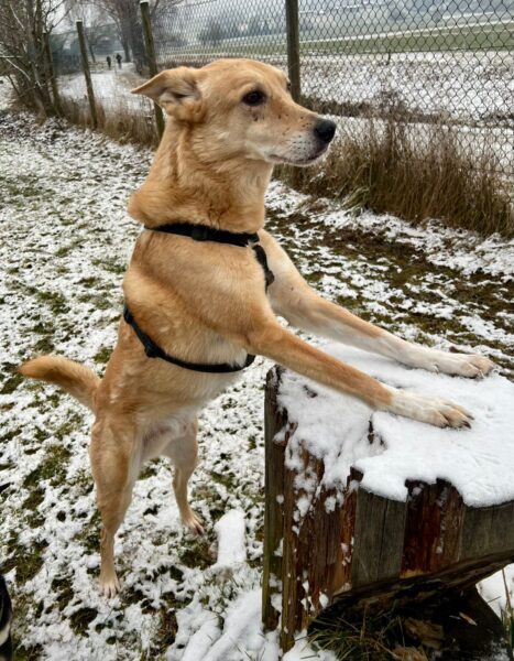 Jeanne ging mit Lucky 2.0 bei den Feldern hinter Rottau spazieren. Es war echt kalt und so blieben die beiden immer in Bewegung. Lucky schnüffelte viel und entdeckte dabei viele ebenfalls frierende Mäuse, erlegte aber Gott sei Dank keine. Zurück im TierHeim hat Jeanne noch eine Weile mit Lucky in seinem Zimmer gekuschelt, bevor sie sich von ihm verabschiedete und wieder fuhr. 🙂