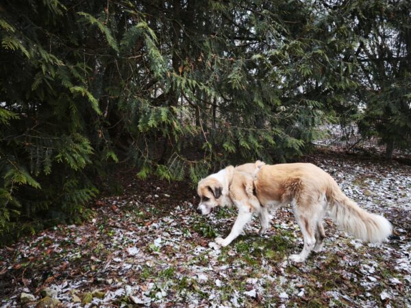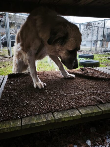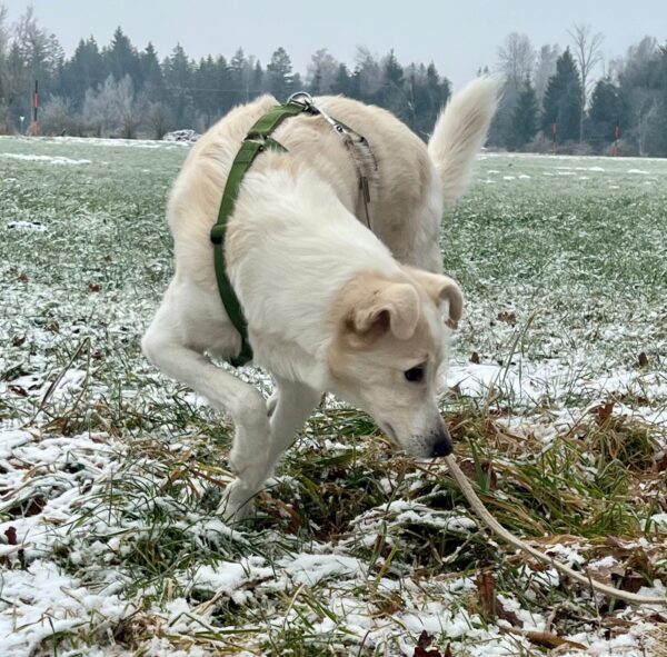 Später war Carsten mit Aslan kurz im Auslauf, da leider der Hundeplatz belegt war.😞 Aslan fand es trotzdem toll und suchte eifrig die Leckerchen, die Carsten für ihn versteckt hatte – und fand sie natürlich auch. 🙂