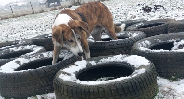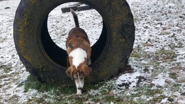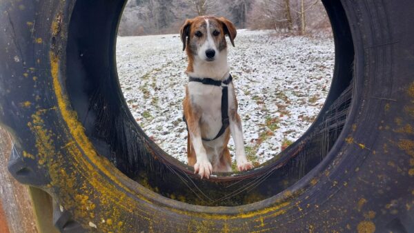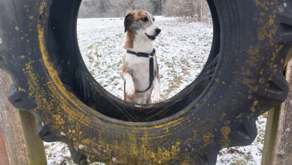 Conny fuhr mit Lena zum Hundeplatz, wo die ausgelassen ein paar Runden flitzte, ehe sie konzentriert mit Conny an den Geräten arbeitete und sich über Leckerchen dafür freute. 🙂