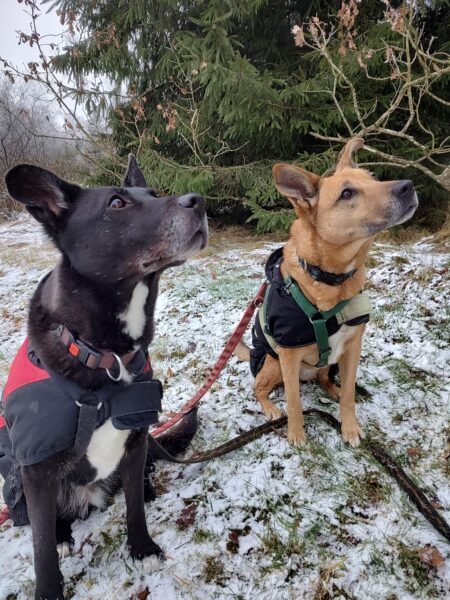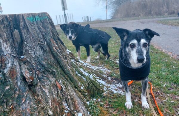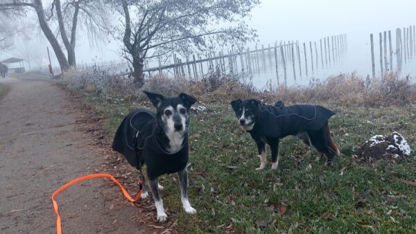 Mit Kirana und Camino ging Dani in ihrer Mittagspause eine schöne Runde in Richtung Übersee bis zum Waldweg. Die beiden Hunde mögen sich sehr gerne und so war der Spaziergang für alle sehr schön und entspannt. Gemeinsam schnüffelten sie alles ab und zeigten zwischendurch immer wieder Spielaufforderungen, aber so liebevoll und dezent, dass Dani am Ende der Leine keine Probleme bekam. Auch während des Spaziergangs liefen die beiden so lieb parallel und suchten den Kontakt zueinander. Es war ein schöner Spaziergang für alle. 😊