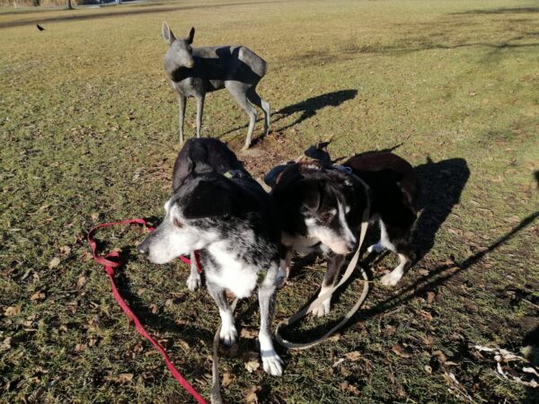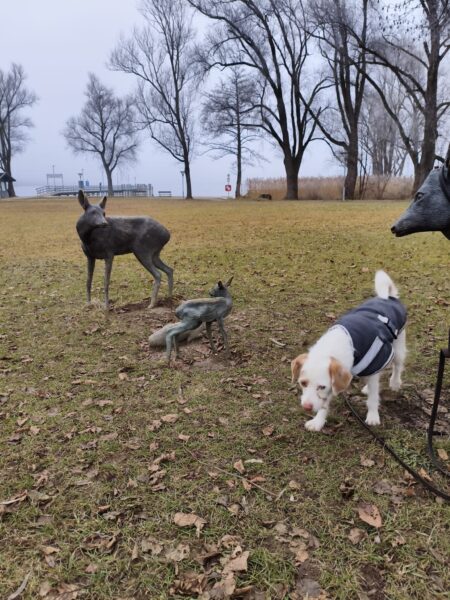 Elfriede war mit Resi und Franzi im Medical Park. Zuerst gingen sie zu den Rehskulpturen zur Leckerlisuche und dann weiter zum See, um Leckerlis aus dem Wasser zu fischen. Danach schnüffelten Resi und Franzi noch eine Weile auf den Wiesen und an den Büschen, bevor es zurück ins TierHeim ging. 🙂
