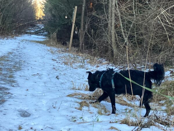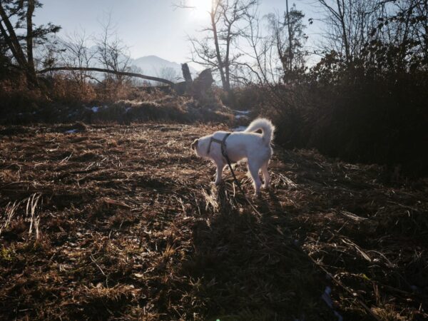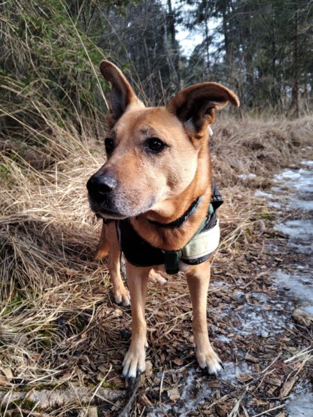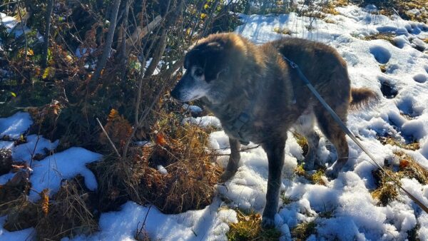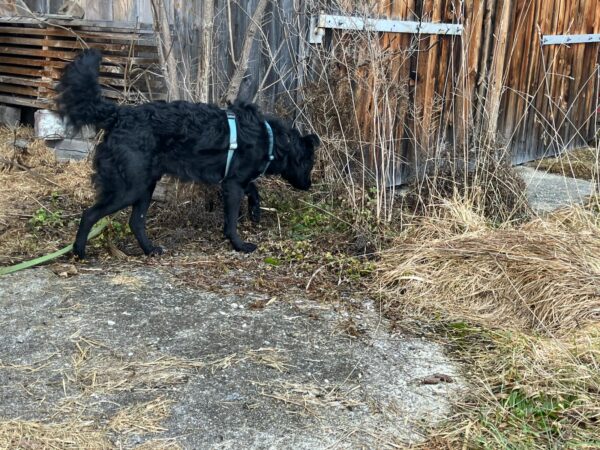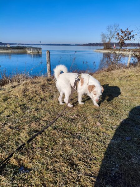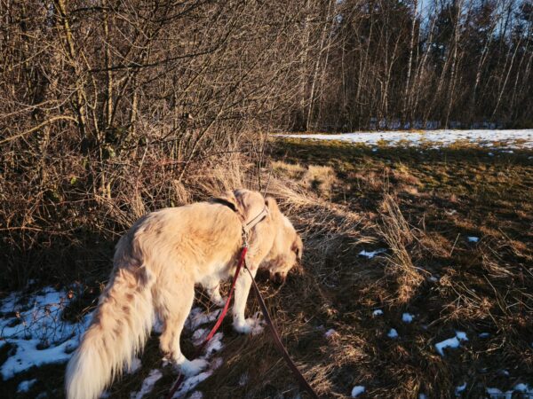 Santana und Kerstin machten einen tollen Spaziergang erst auf die große Wiese und dann weiter in Richtung Übersee zum Waldweg. 🙂 Schaut mal, wie zufrieden Santana aussieht, wenn er unterwegs nach Herzenslust herumschnüffeln und stromern darf. Sooo schön! 🙂