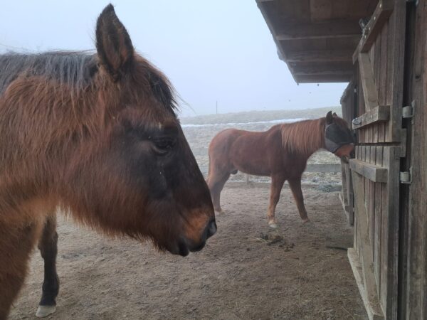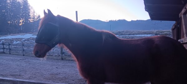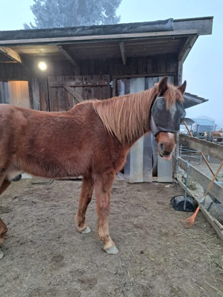 Morgens war Dani bei den Pferden, die sie freundlich wiehernd begrüßten und dann in Erwartung des warmen Müsli`s gleich in ihre Boxen gingen. Während sie fraßen, mistete Dani ab, legte frisches Heu nach und kontrollierte die Tränke. Bei der Huf- und Fellpflege waren Wallace und Gowinda sehr kooperativ und das anschließende Kuscheln fanden sie toll. 🙂