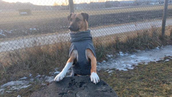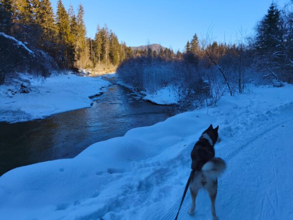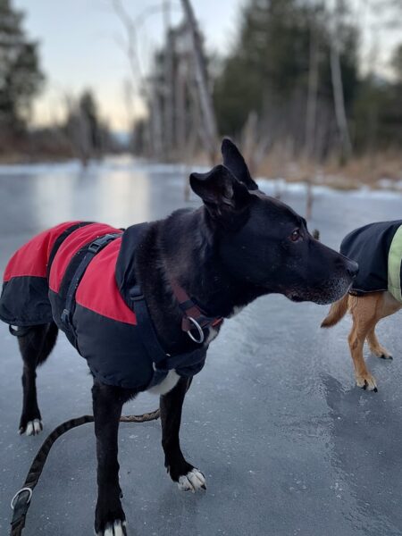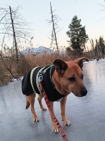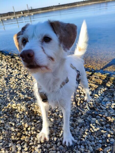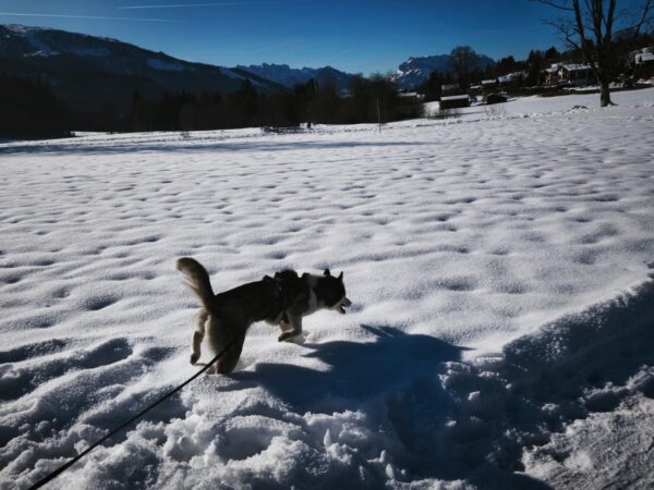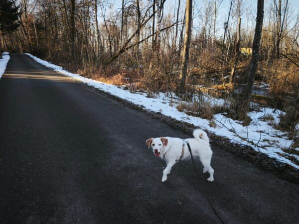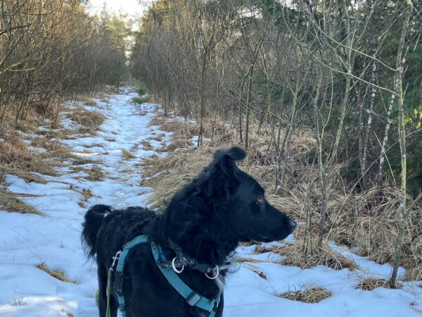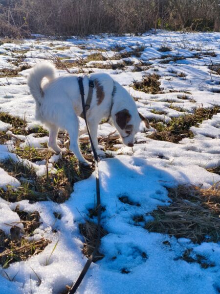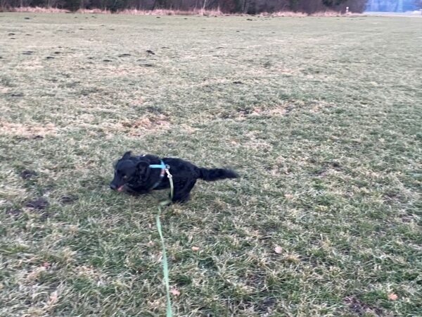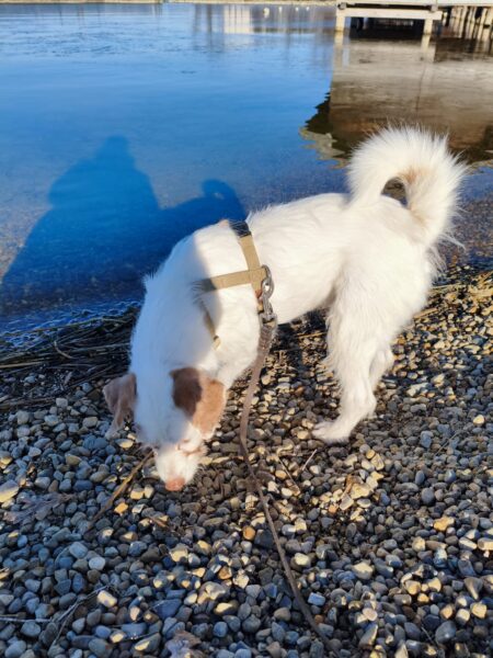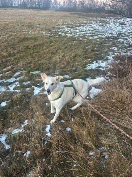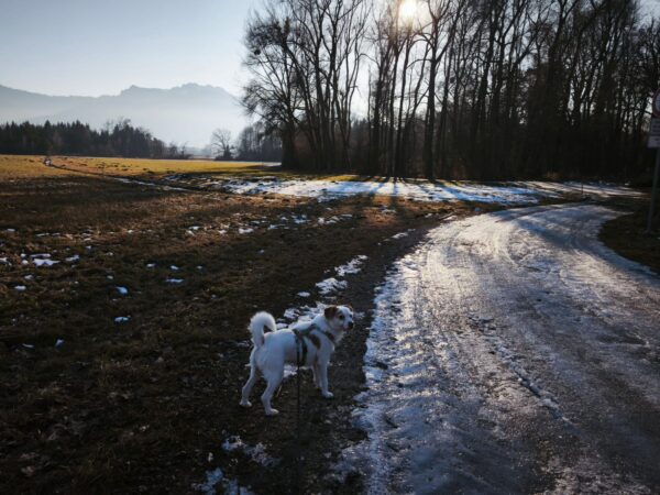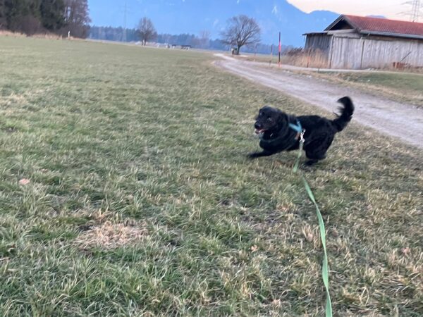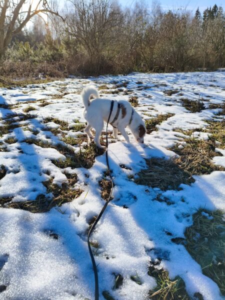 Jeanne war mit Lucky 2.0 auf den Rottauer Feldern unterwegs. Lucky fand die Strecke total toll und schnüffelte viel herum. Jeanne und er haben inzwischen eine Technik gefunden, wie er trotz Leine herumtoben kann und auf einer großen gefrorenen Wasserlache demonstrierte er, wie geschickt er über das Eis laufen kann. Über Leckerchen und Streicheleinheiten hat er sich natürlich auch gerfreut. 🙂