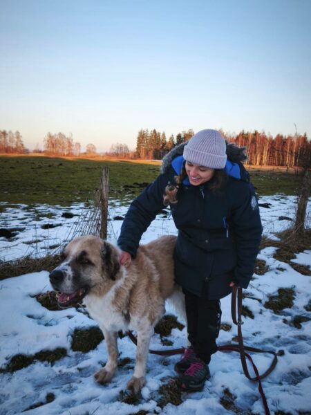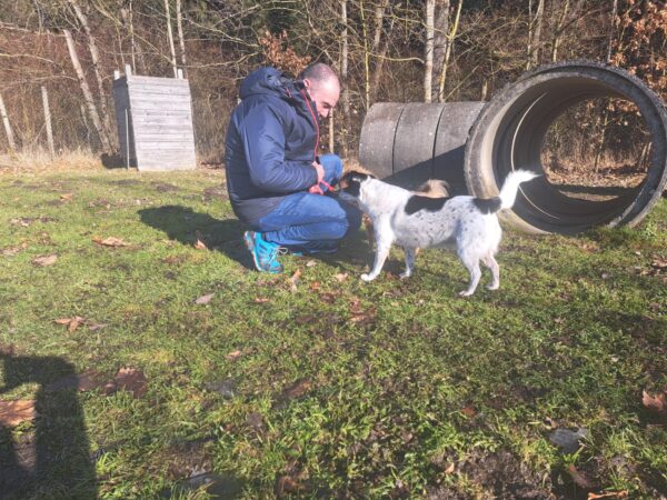 Aslan freute sich über einen Spaziergang auf der großen Wiese mit Carsten und Kerstin. Er schnüffelte viel herum und suchte begeistert die für ihn ausgelegten Leckerchen. Die Streicheleinheiten von Kerstin hat er auch sehr genossen und so war es auch für ihn ein toller Ausflug. 🙂