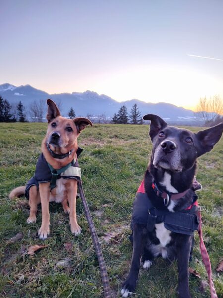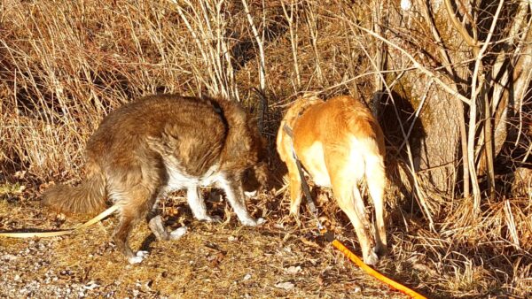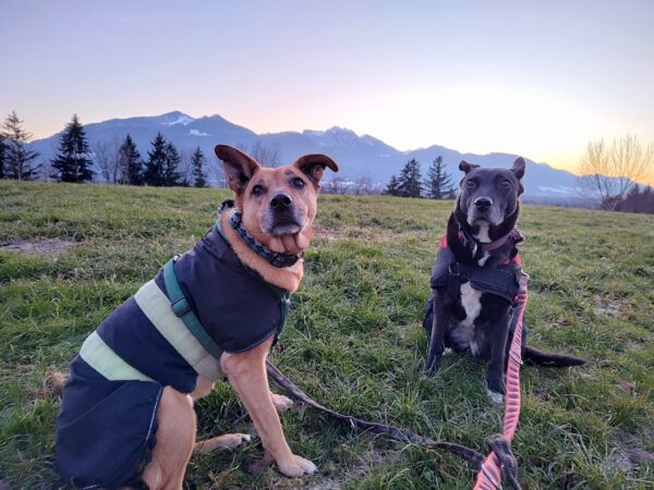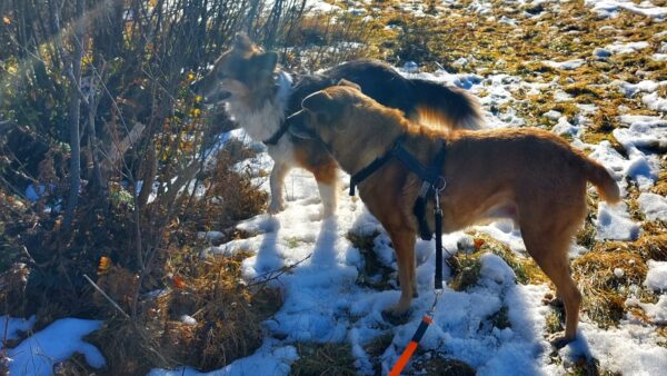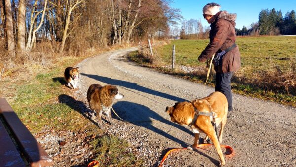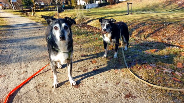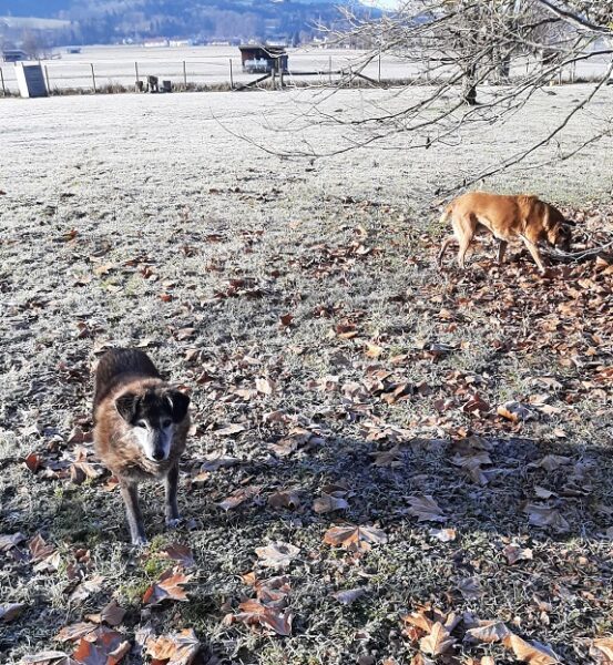 Momo und Aika waren mit Renate und Gunda in Rottau auf dem Moorweg gegenüber vom Torfmuseum unterwegs. Sie schnüffelten viel über die neue Strecke und freuten sich während einer Pause über Leckerchen und Streicheleinheiten. 🙂