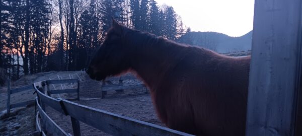 Auch am Abend war Dani bei den Pferden. Es war richtig eisig kalt, aber in den Boxen von Wallace und Gowinda ließ es sich aushalten. Die beiden mampften zufrieden ihr warmes Müsli, Dani erledigte derweil die üblichen Stallarbeiten und dann haben alle drei noch einen Moment gekuschelt, bevor Dani wieder fuhr. 🙂