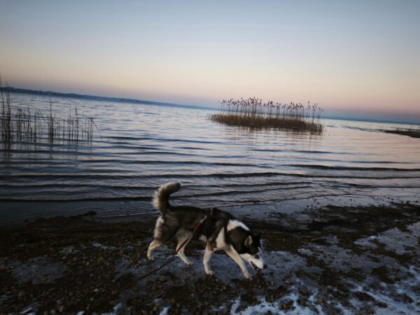 Carsten war mit Kirana in Übersee am Chiemsee, wo Kirana trotz der Eiseskälte mit Begeisterung ins Wasser ging! Die allmählich untergehende Sonne schaffte ein tolles Farbenspiel in Pastelltönen, schaut mal: