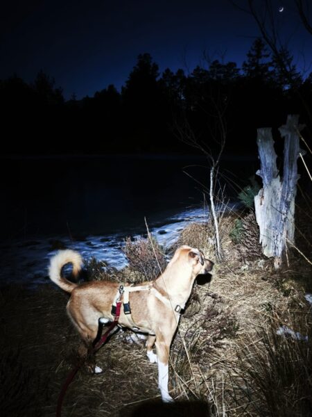 Carsten war mit Elfie beim Förchensee und rund herum auf den Wiesen unterwegs. Elfie schnüffelte durch`s Gestrüpp und freute sich unterwegs über Leckerchen und Streicheleinheiten. 🙂