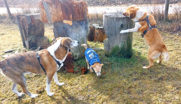 Auch Lena, Angel und Bonnie waren bei herrlichem Sonnenschein unterwegs. Conny fuhr mit den Dreien zum Hundeplatz, wo alle mega viel Spaß beim Wälzen, Wettrennen, Krähen scheuchen und Leckerlies einsammeln hatten. Natürlich gab es auch viele Streicheleinheiten und so war es ein toller Ausflug! 🙂