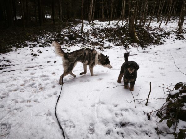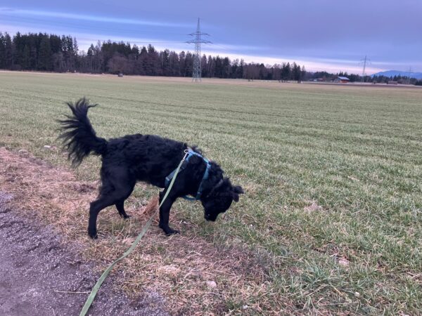 Jeanne war mit Lucky 2.0 im Wald und auf den Feldern rund um Rottau, wo sie einen schönen Spaziergang machten. Lucky schnüffelte viel, war ausgeglichen und ruhig und freute sich, wenn er dank seiner guten Nase die Leckerchen fand, die Jeanne für ihn ausgelegt hatte. 🙂