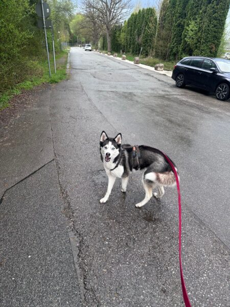 Gleich morgens fuhr Anna Maria mit Santana zum Bärnsee, Santana freute sich sehr und hüpfte fröhlich im Zimmer auf und nieder, als sie ihm sein Geschirr anzog. 🙂 Auf der Hinfahrt hat er trotz vieler Spaziergänger nicht ein Mal gebellt. Am Bärnsee drehten die beiden eine entspannte Runde, ein Spaziergänger war kein Thema, aber einer Frau mit ihrem ruhigen Retriever sind die beiden ausgewichen, da Santana ungewöhnlicher Weise etwas gereizt reagierte. Er beruhigte sich aber gleich wieder und hat viel geschnüffelt, Leckerlies gesucht und in allen Pfützen und Bächen gepritschelt. Auf der Rückfahrt kamen ihnen mehrere Radfahrer entgegen, zunächst war das Santana egal, aber auf dem letzten Stück zum TierHeim waren sie ihm zu nah und er verbellte sie. Zurück im Zimmer hat Anna Maria noch einen Moment mit ihm gekuschelt, was Santana sehr genoss. 🙂