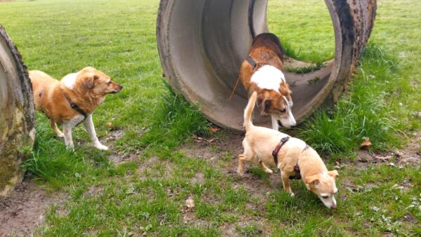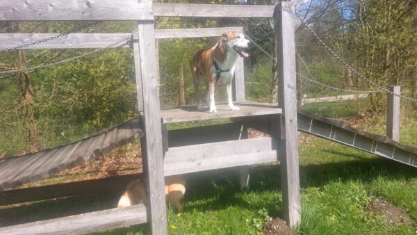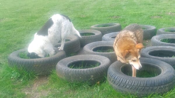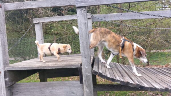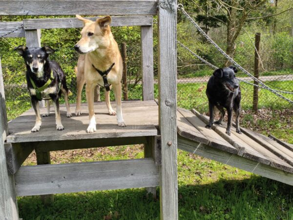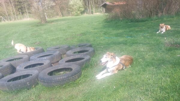 Percy, Nicky und Laluna freuten sich über einen Ausflug mit Heinz zum Hundeplatz. Oben angekommen schnüffelten die drei eifrig herum, arbeiteten mit Heinz an den Geräten und freuten sich über Leckerlies dafür. Auch bei den Reifen hatten die drei viel Spaß bei der Leckerliesuche. 🙂