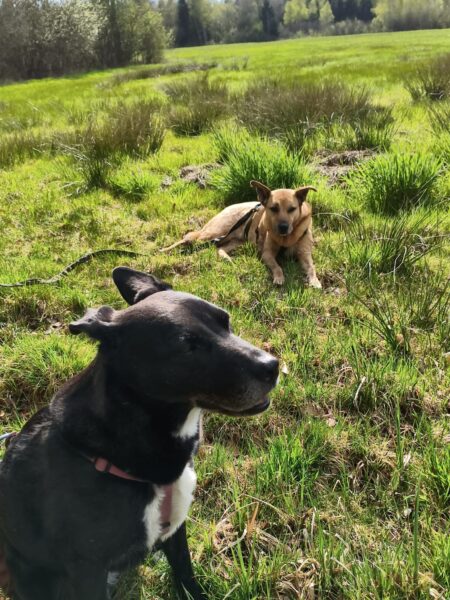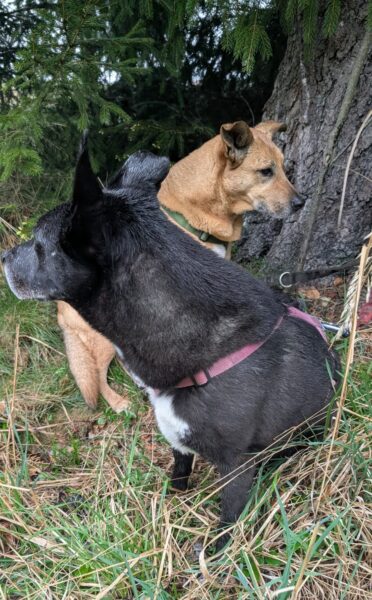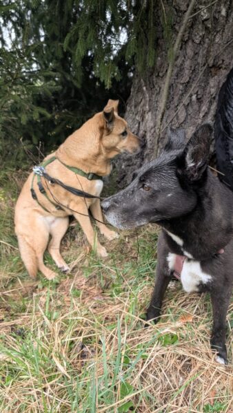 Mit Momo und Aika gingen Jutta und Heinz spazieren. Momo und Aika wollten zum kleinen See um zu baden, danach zeigten sie an, dass sie zum Wäldchen wollten, wo sie spannenden Spuren folgten. Zwischendrin legten sie sich immer wieder hin und wollten gestreichelt werden und vor allem Aika wollte gar nicht zurück, sie wäre gern noch lange geblieben. Zurück im TierHeim verbrachte Jutta noch viel Zeit mit den beiden im Auslauf. 😊