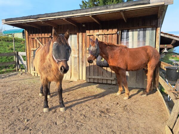 Morgens war Sonja bei den Pferden, von denen sie freundlich wiehernd begrüßt wurde. Während die beiden ihr Müsli fraßen, hat Sonja das Einstreu in den Boxen gedreht, ausgemistet, die Tränke gereinigt und frisches Heu aufgelegt. Während der Fell- und Hufpflege hat sie bei Wallace die Augen behandelt und den Schlauchsack gewaschen, dann sind Wallace und Gowinda auf die Weide gegangen und Sonja fuhr wieder.:-)