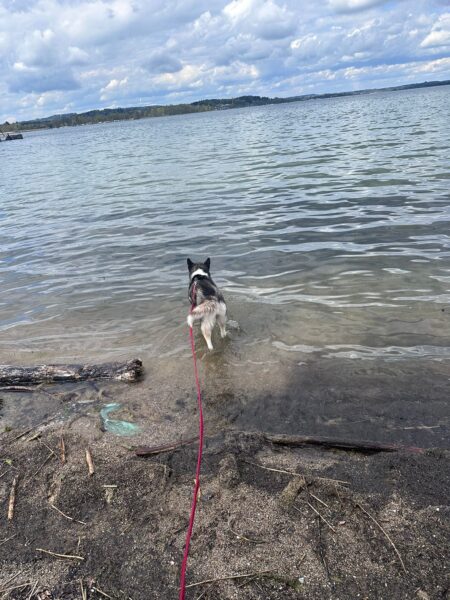 Patricia und Kirana waren derweil in Richtung Bernau unterwegs. Am Medical Park war nicht so viel los, so war ganz viel Platz zum Herumschnüffeln. Gebadet hat Kirana natürlich auch, ansonsten war sie viel mit der Nase im Boden, da hat irgendetwas offensichtlich super spannend gerochen. 🙂