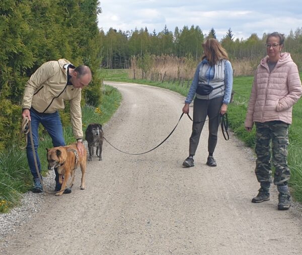 Anna Maria, Heinz und Biggi waren mit Rosalie, Lucky und Balto auf der großen Wiese. Für Biggi das erste Mal mit Rosalie im Freilauf, sie war total begeistert, wie toll Rosalie hört – selbst als ein paar Wildgänse aufflogen, ließ sie sich super abrufen. 🙂 Heinz und Lucky waren im Schnüffel- und Kuschelmodus unterwegs und Balto und Anna Maria bildeten die Nachhut. Balto schnüffelte ausgiebig durch`s Gras und freute sich über Leckerliesuchen und eine entspannte Pause zum Beobachten der Gegend. Auf dem Rückweg trafen sich alle wieder am Wiesenausgang und kamen gut gelaunt gemeinsam ins TierHeim. 🙂