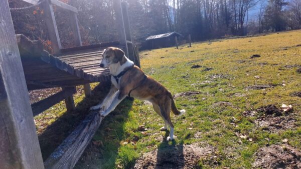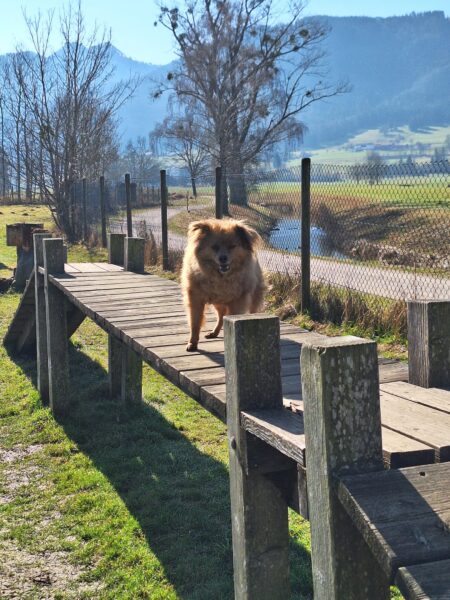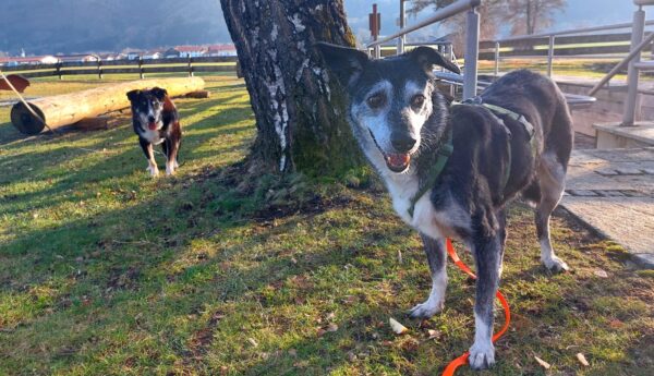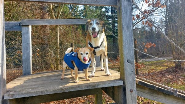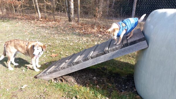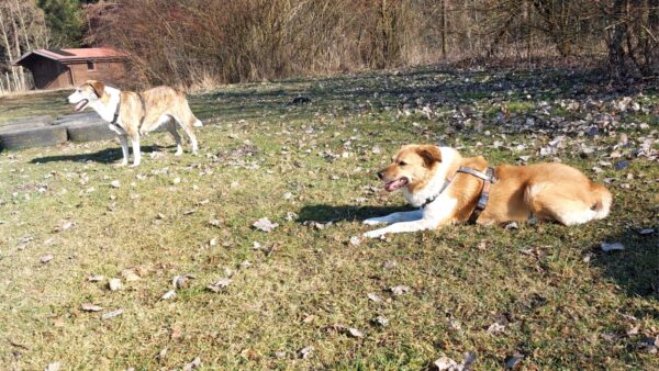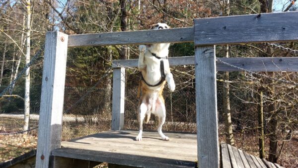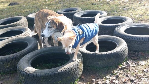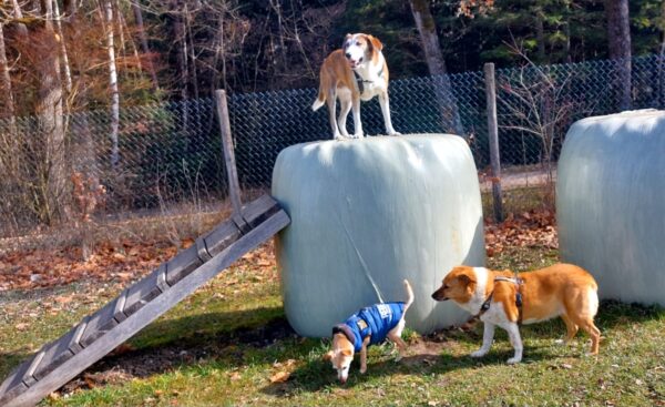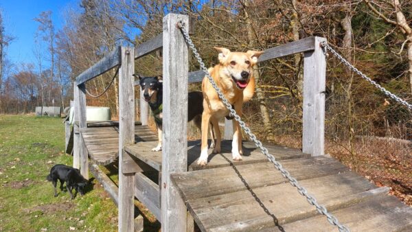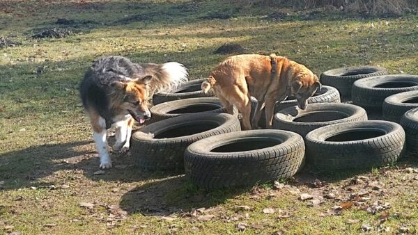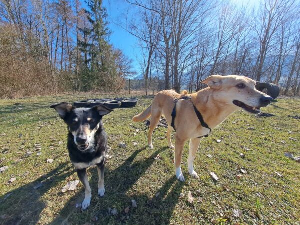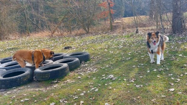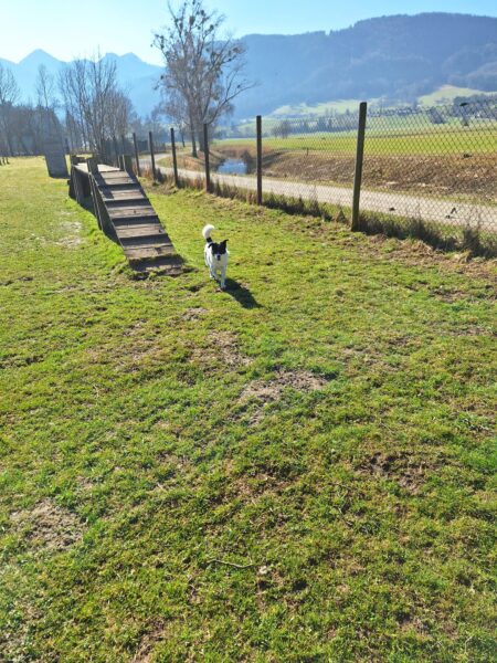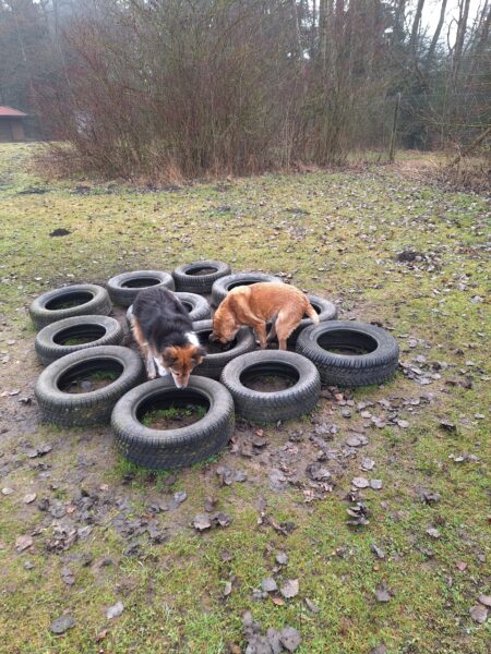Danach fuhr Conny mit Rosalie und Lucky zum Hundeplatz, wo die beiden fröhlich herumflitzten und sich über Leckerchen beim Geräteturnen freuten. Anschließend drehten sie draußen ihre Schnüffelrunde um den Platz, bevor es zufrieden wieder zurück ging. Balto, der zum Glück auf dem Weg der Besserung ist, wurde von den Rückkehrern freundlich im Zimmer begrüßt. 🙂