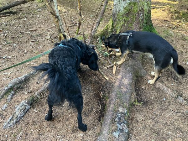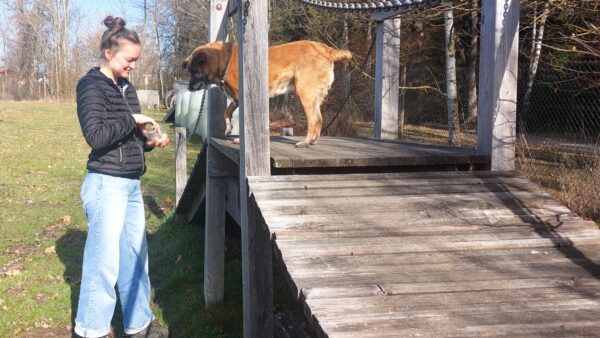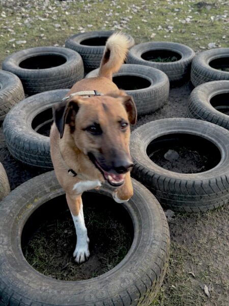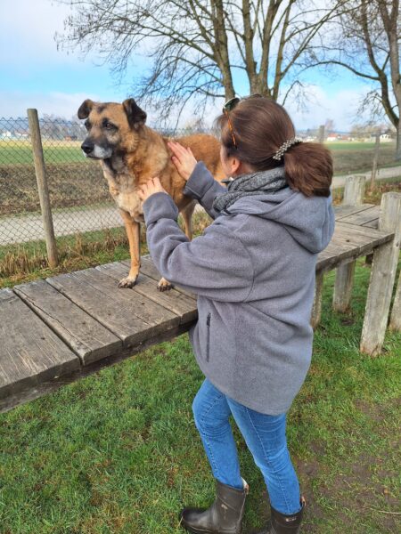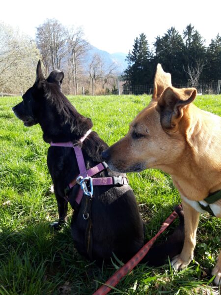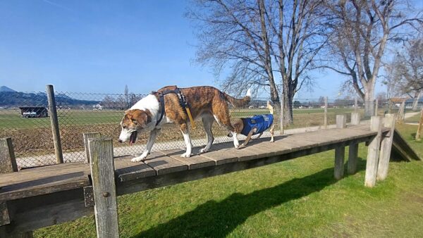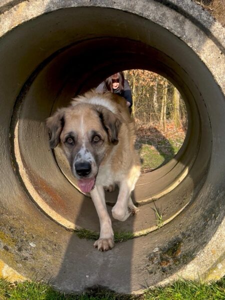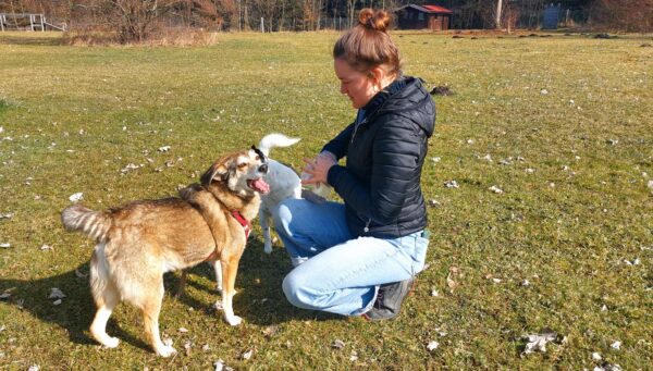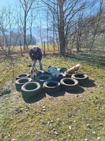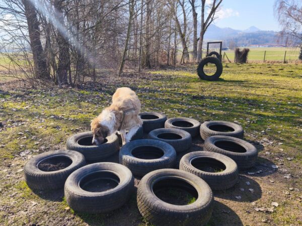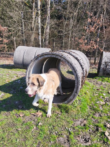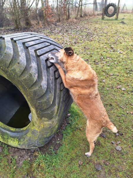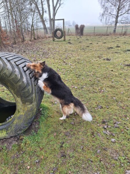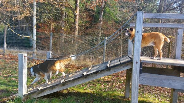 Danach fuhr Conny mit Rosalie und Lucky zum Hundeplatz, wo die beiden fröhlich herumflitzten und sich über Leckerchen beim Geräteturnen freuten. Anschließend drehten sie draußen ihre Schnüffelrunde um den Platz, bevor es zufrieden wieder zurück ging. Balto, der zum Glück auf dem Weg der Besserung ist, wurde von den Rückkehrern freundlich im Zimmer begrüßt. 🙂