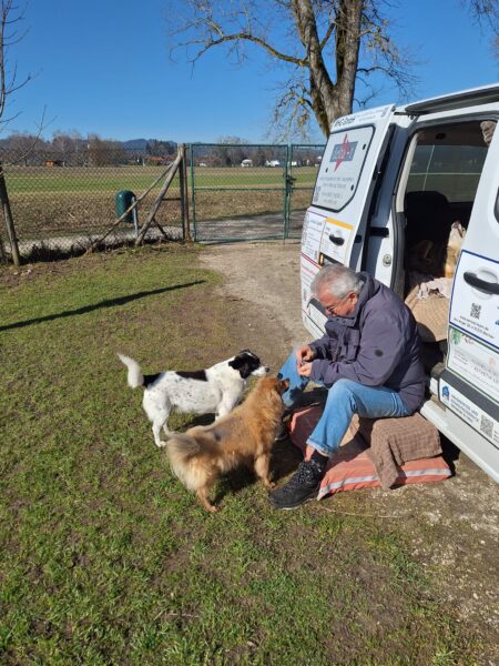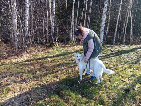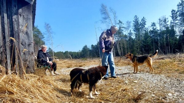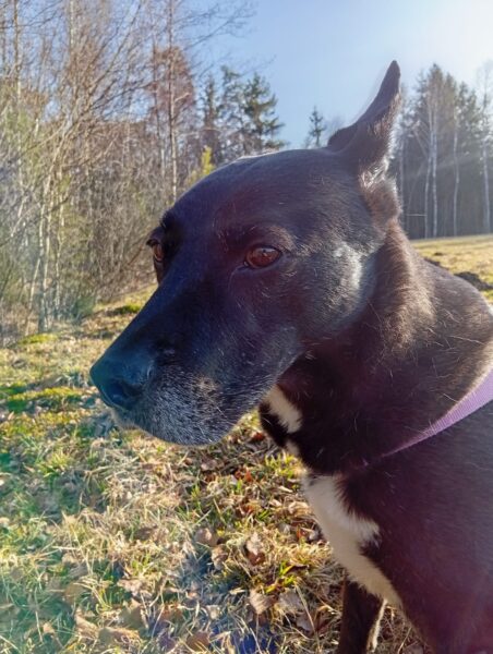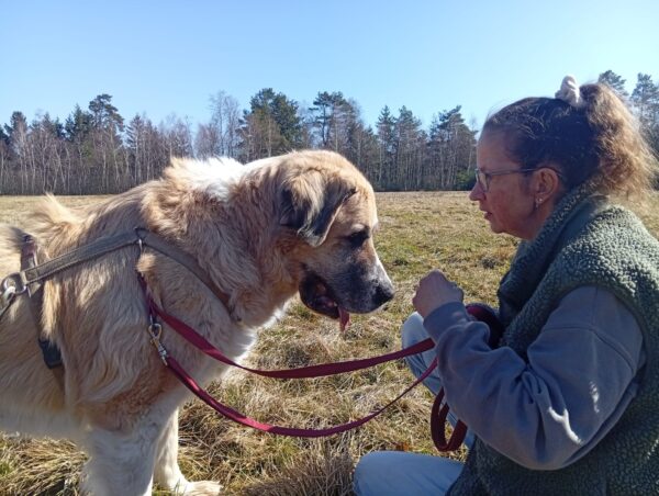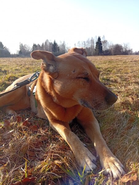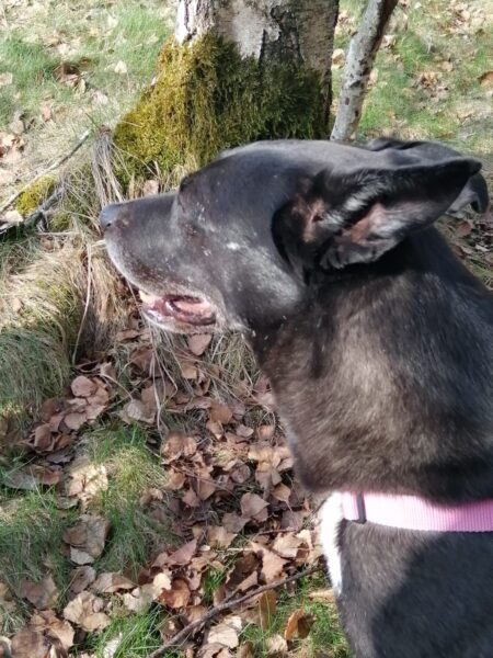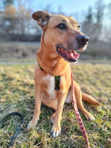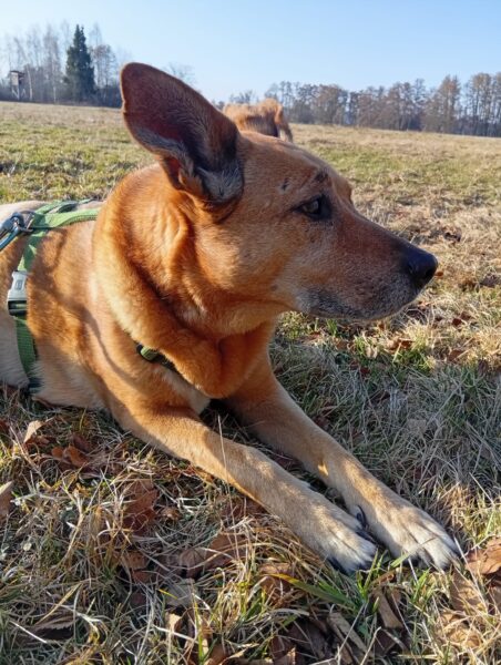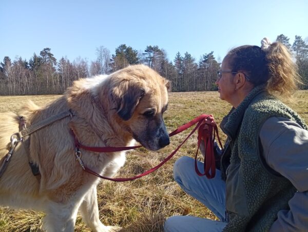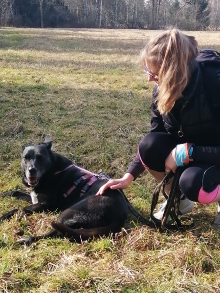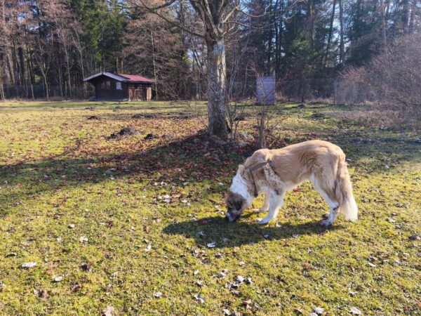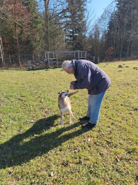 Jörn war mit Lucky auf den Wiesen rund um das TierHeim unterwegs. Lucky schnüffelte entspannt, beobachtete wie immer aufmerksam die Umgebung und genoss Jörn´s Streicheleinheiten während einer Pause am Waldrand. 🙂