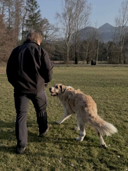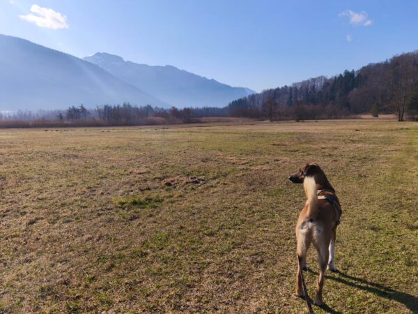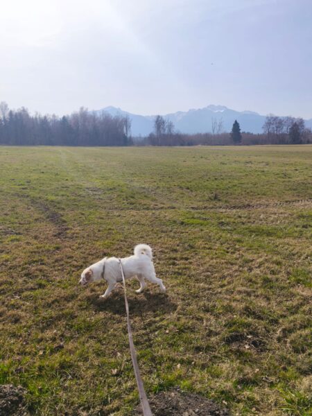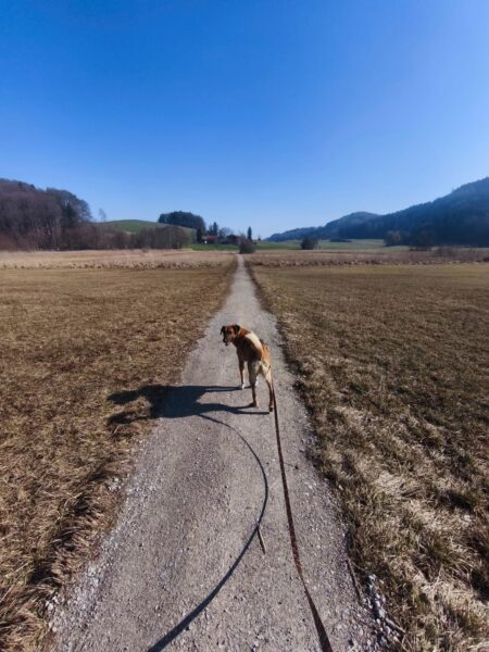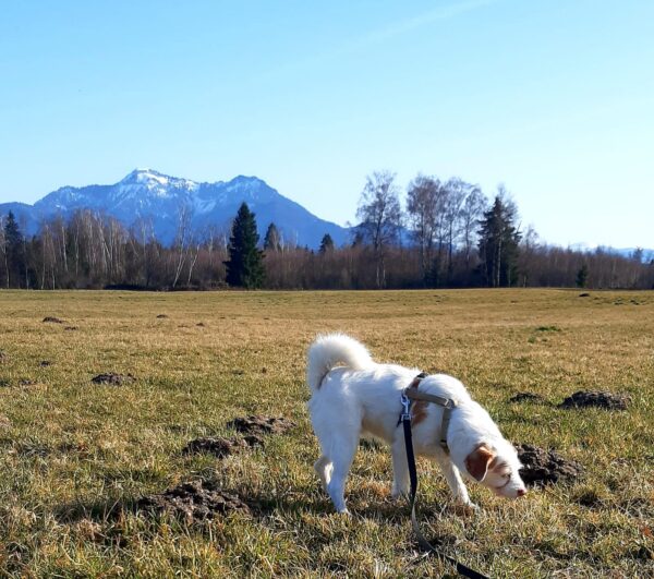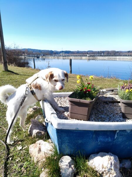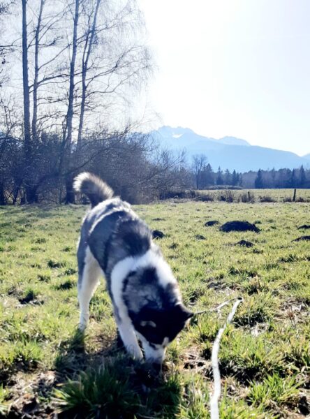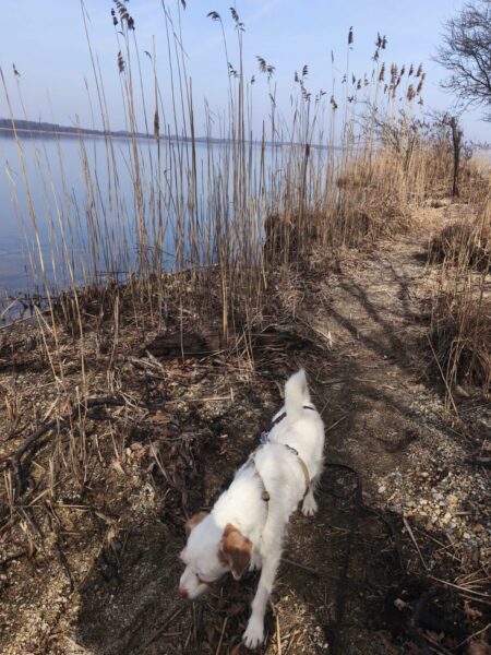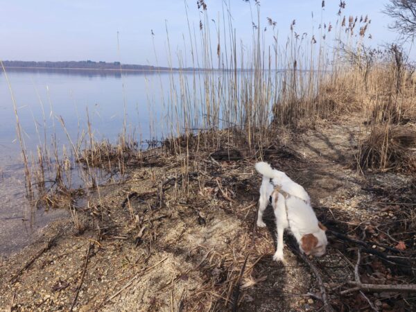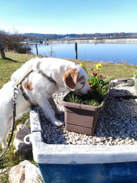 Carsten ging mit Elfie in Richtung Übersee zum Chiemsee, wo die beiden einen schönen Schnüffelausflug für Elfie machten. Sie stromerte fröhlich über Wiesen, Waldpfade und am Seeufer entlang und zwischendurch hatten die beiden viel Freude bei Leckerliesuchen und ausgiebigen Kuschelpausen in der herrlichen Sonne. 🙂