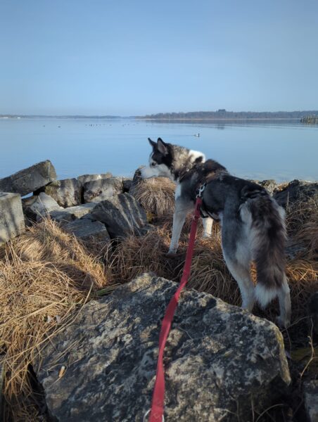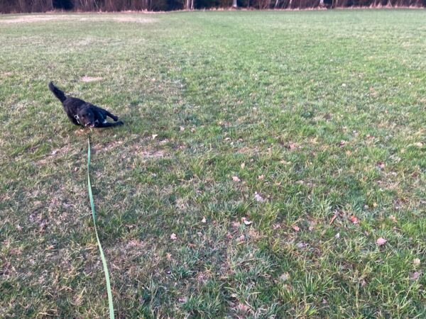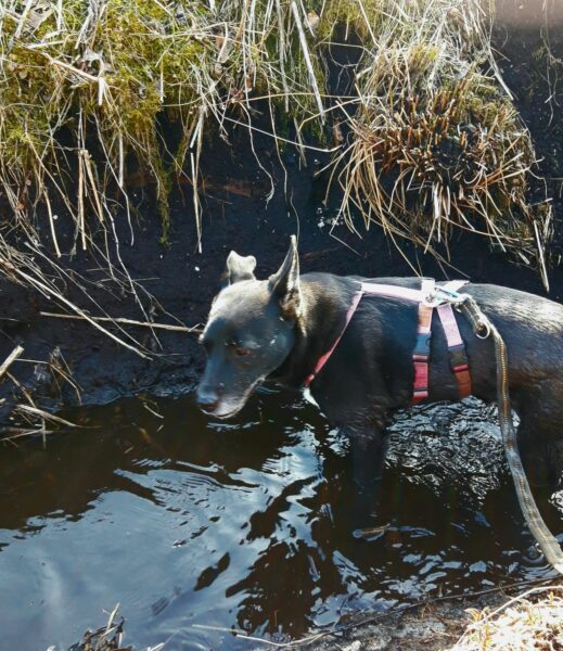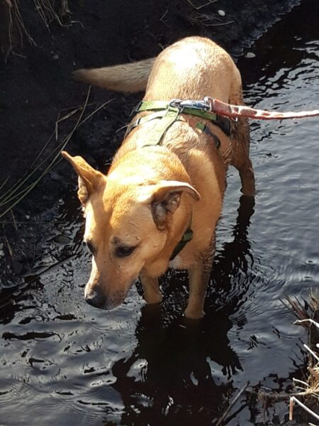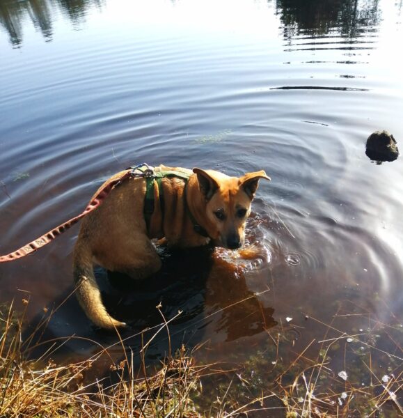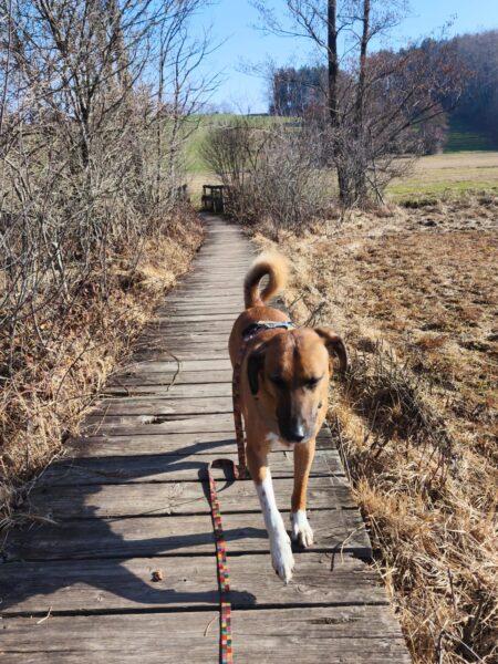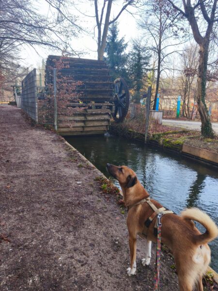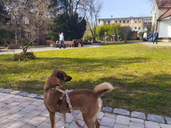 Emilia war vormittags mit Kirana im Medical Park. Es war ein schöner Spaziergang für die beiden, Kirana konnte ausgiebig schnüffeln und im Wasser plantschen, wobei sie die vielen Enten zwar beobachtete, aber dabei völlig entspannt blieb und nicht versuchte, sie zu jagen. 🙂
