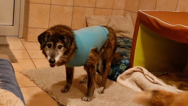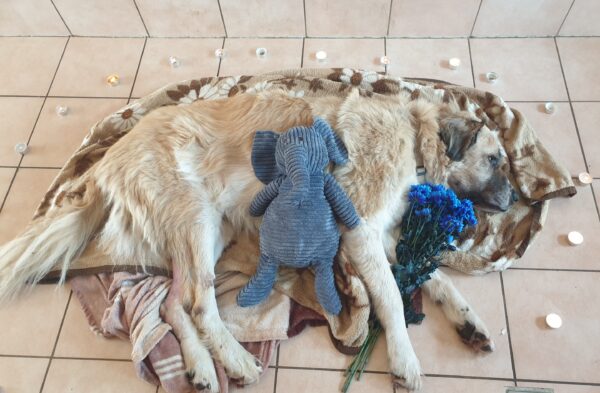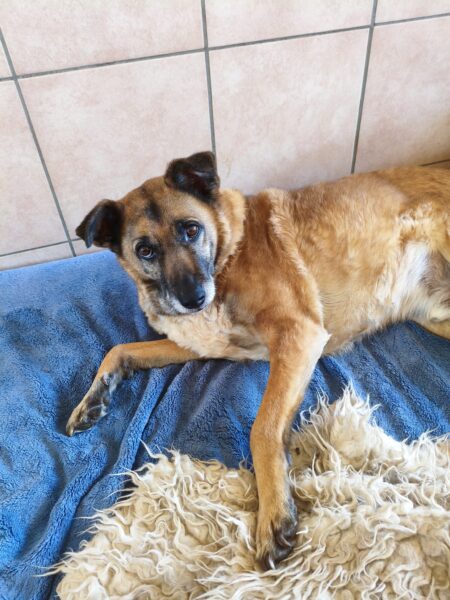 Was für ein schlimmer Morgen! Aslan konnte nicht mehr alleine aufstehen, Alex hob ihn hinten hoch, damit er zum Stehen kam. Dann ging er wackelig, aber zielstrebig in den Hof und weiter zu seinem Futternapf, den er mit Appetit leerte. Beim Laufen sah Alex allerdings, dass er am linken Knöchel eine große Wunde hatte und sein Bein angeschwollen war. Weil das nicht wie eine normale Schürfwunde aussah, sondern wesentlich ernster, fuhren Chris und Sissy mit ihm in die Tierklinik. Aslan freute sich über den Ausflug mit den beiden, aber das Bein wurde immer dicker und er fiebrig. In der Klinik wurde dann das ganze Ausmaß sichtbar, sein Bein war bis auf die Knochen entzündet und vereitert und über Nacht hatte sich das ganze seinen Weg nach außen gebahnt, eine sog. Phlegmone. 🙁 Durch das Kortison, das ihm trotz der Probleme mit dem Bewegungsapparat noch Mobilität verschafft hatte, konnte die Entzündung so lange vom Immunsystem unbekämpft vor sich hin schwelen. Weil er große Schmerzen hatte und die Prognose denkbar schlecht ausfiel, entschlossen wir uns schweren Herzens, ihn gehen zu lassen, alles andere hätte nur eine Verlängerung seines Leidens bedeutet und zusätzlich hätte die Gefahr bestanden, dass er in den nächsten Stunden elendig an einer Sepsis stirbt. Chris und Sissy waren bei ihm, als er sich auf seine letzte Reise machte. Wir sind immer noch geschockt, daß wir Aslan so schnell gehen lassen mussten. Für ihn mit Sicherheit die richtige Entscheidung, aber die Lücke, die er hinterlässt, ist groß und noch unfassbar! 😪