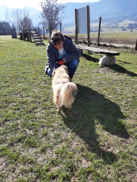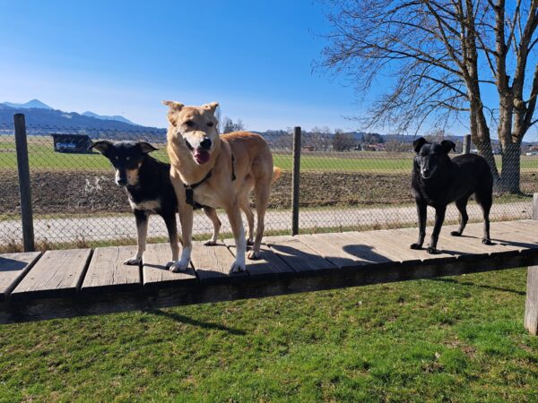 Conny fuhr mit Lena, Angel und Bonnie zum Hundeplatz. Alle hatten viel Spaß, die Mädels waren fröhlich beim Schnüffeln, Leckerliesuchen, Geräteturnen und Krähen scheuchen. Natürlich genossen alle die Kuschelzeit mit Conny sehr, schaut mal, wie fröhlich die Hunde lachen! So eine Freude! 🙂
