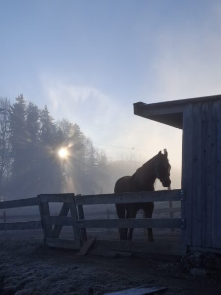Sowohl morgens, als auch abends war Biggi im Stall und kümmerte sich um Wallace und Gowinda. Den beiden geht es gut, sie sind bei dem frühlingshaften Wetter viel auf der Weide und grasen zufrieden vor sich hin. Über ihre Müslirationen und den Besuch morgens und abends freuten sie sich sehr und blieben nach dem Fressen auf dem Paddock, bis sich Biggi mit Streicheleinheiten und einem Leckerchen von ihnen verabschiedet hatte. Dann gingen sie wieder auf die Weide. 🙂