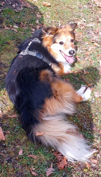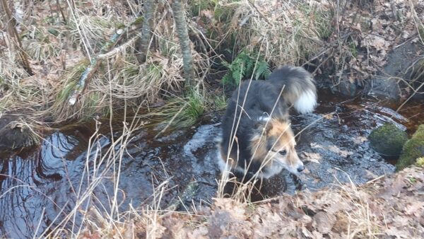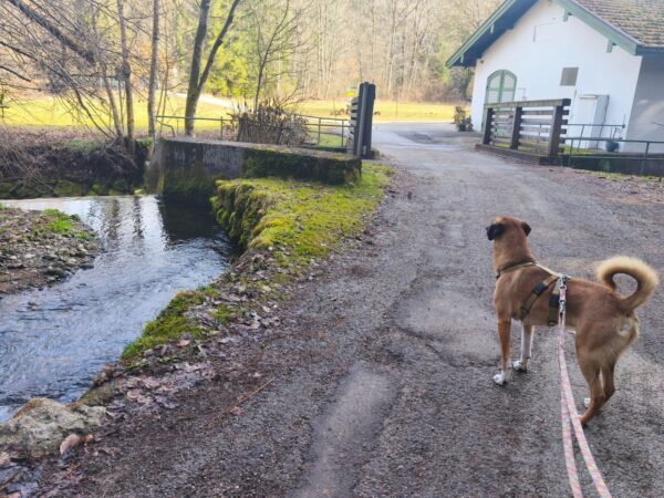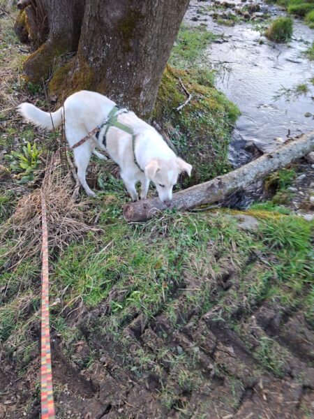 Chris und Sissy fuhren mit Santana zum Wasserfall, wo sie einen ruhigen und entspannten Spaziergang machten. Santana schnüffelte ausgiebig herum und freute sich, dabei Leckerchen zu finden, die Chris und Sissy für ihn ausgelegt hatten. Dann machten die Drei eine Kuschelpause in der ruhigen Umgebung – schön war`s. 🙂
