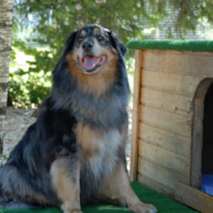 Jerry ist ein 9jähriger, kastrierter Australian Sheppard Rüde. Er verträgt sich gut mit anderen Hunden und Katzen, ist sehr aufmerksam und gelehrig und liebt alle Arten von Beschäftigungen: von Intelligenzspielen bis zur Gerätearbeit. Er bleibt auch mal allein und fährt problemlos im Auto mit.
