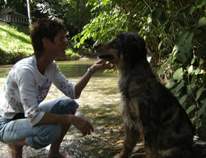 uns gehts, wie ich dir ja vor kurzem schon geschrieben hab, super gut. Jerry und ich machen uns jeden Tag gegenseitig einfach nur ganz viel Freude. Jerry ist ein so besonderer Hund! Für mich immer wieder unbegreiflich, wie ein so toller, lieber Hund ein Jahr im Tierheim gesessen hat. Wenn er seine Spaziergänge, Spiele und Kuscheleinheiten hat, ist er absolut cool und gelassen und regt sich wegen gar nix mehr auf (nur wenn uns eine Katze über den Weg läuft – und wenn´s im Wald was zu jagen gibt).