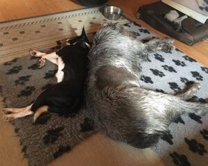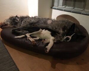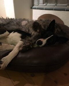 Nach unserem langen Aufenthalt in England sind wir wieder wohlauf zuhause angekommen. Kasper und Ellie freuen sich über den Schnee und nach einem ausgiebigen Spaziergang schläft es sich besonders gut am warmen Kachelofen.