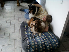 Ich habe Ihnen noch 3 Bilder mit angehängt, damit Sie sehen, dass sich die beiden schon ziemlich wohl fühlen. Sie sind bei uns Zuhause aufgenommen. Vielleicht ist die Qualität nicht so besonders gut, sie wurden mit dem Handy 1aufgenommen. Alles in Allem sind wir einfach nur glücklich und die beiden Hunde anscheinend auch.